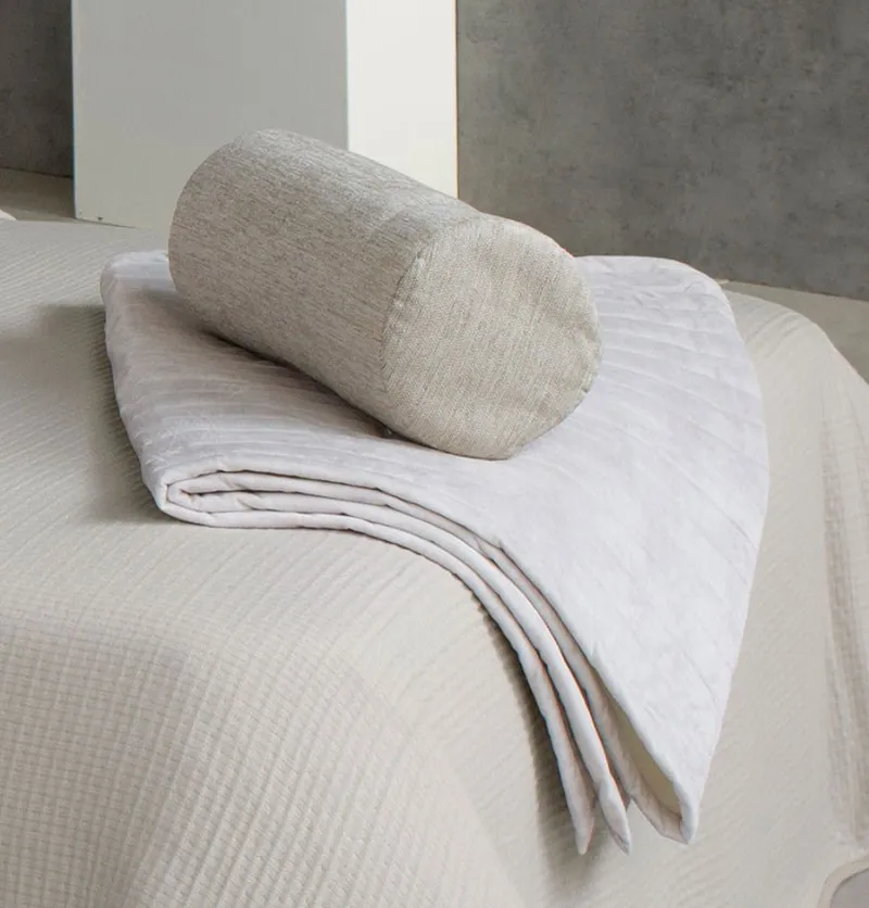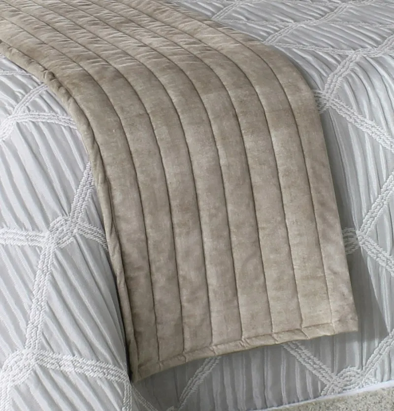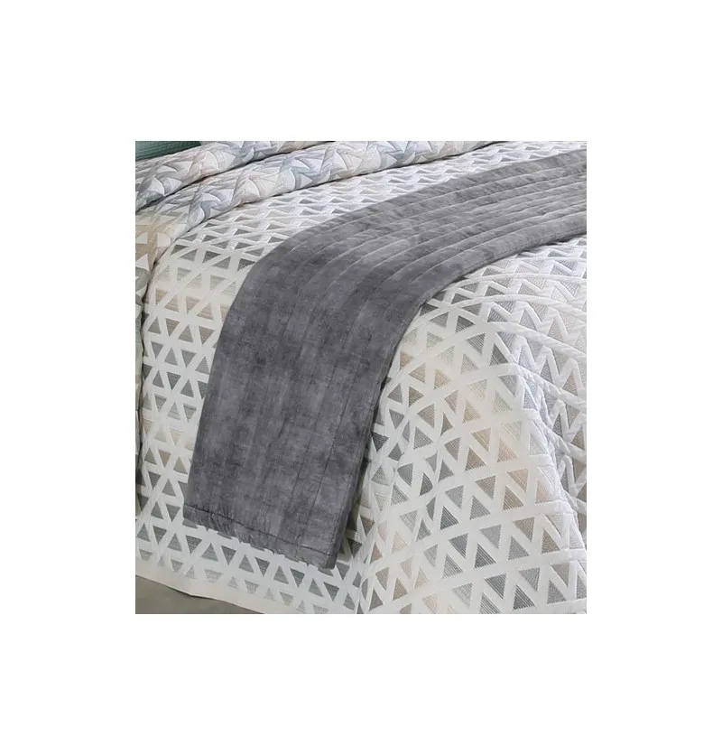 • Chemin de lit velours Darcy gris crème
