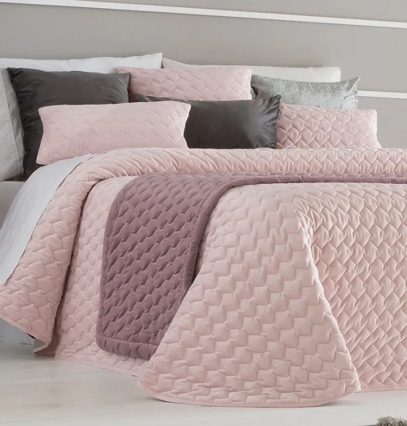 Chemin de lit velours Naroa rose pâle