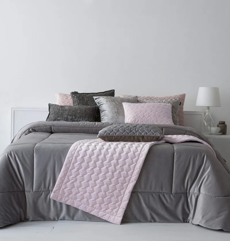• Chemin de lit velours Naroa rose pâle
