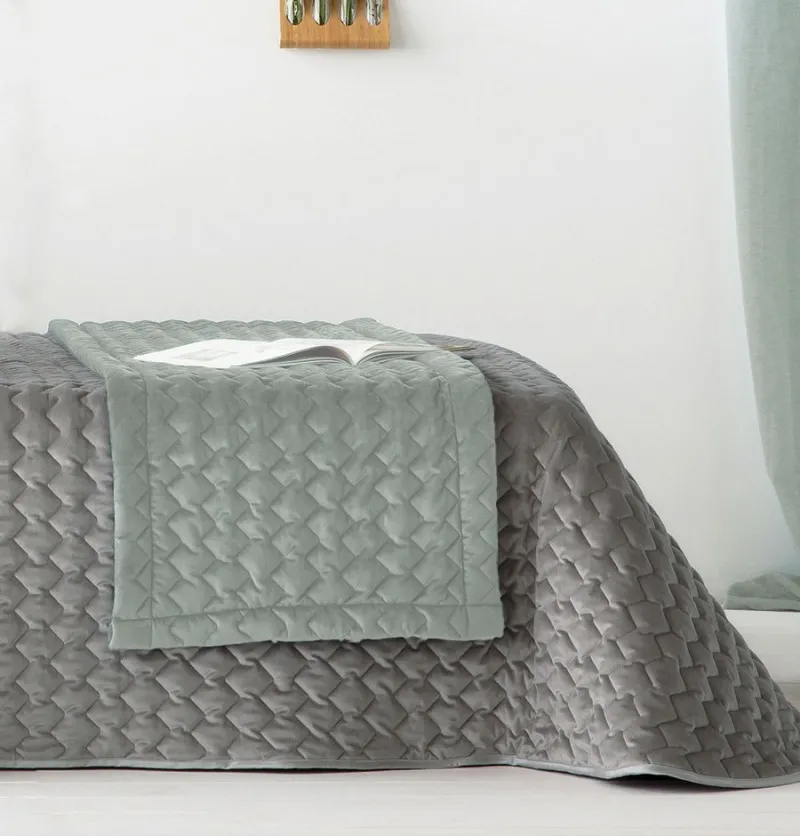 Chemin de lit velours Venice gris perle