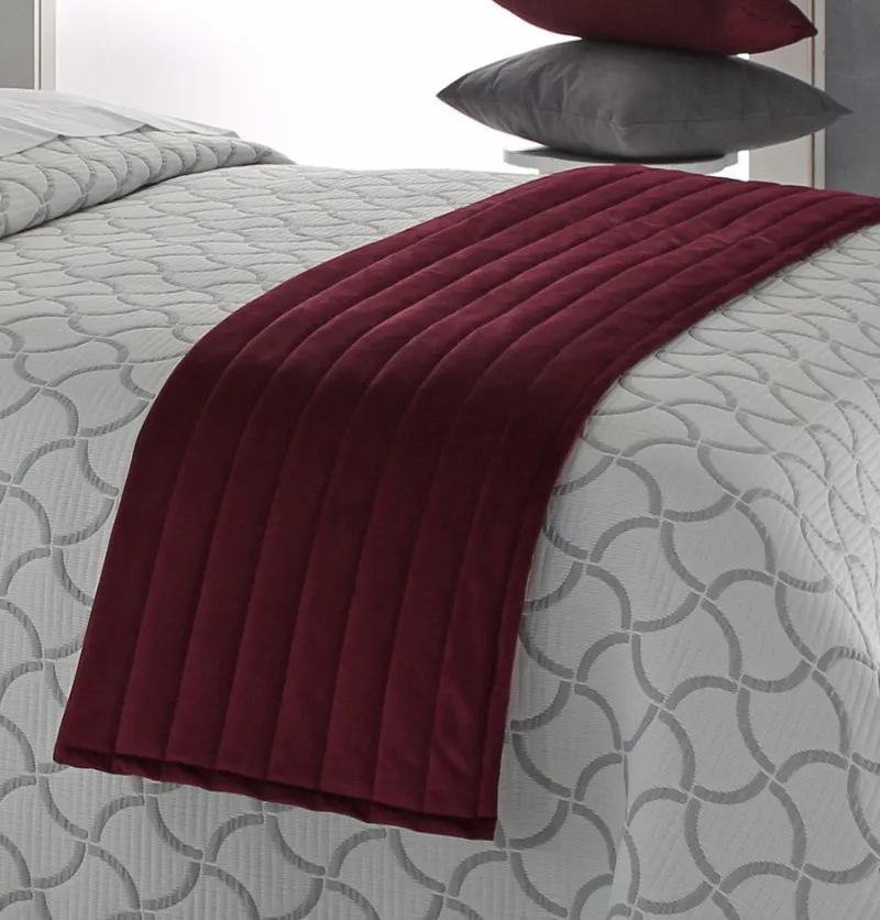 Chemin de lit velours Venice bordeaux