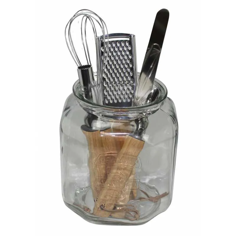 POT EN VERRE « BOBYO » AVEC 5 ACCESSOIRES EN FINITION BOIS ARD’TIME BOPOT5ACC