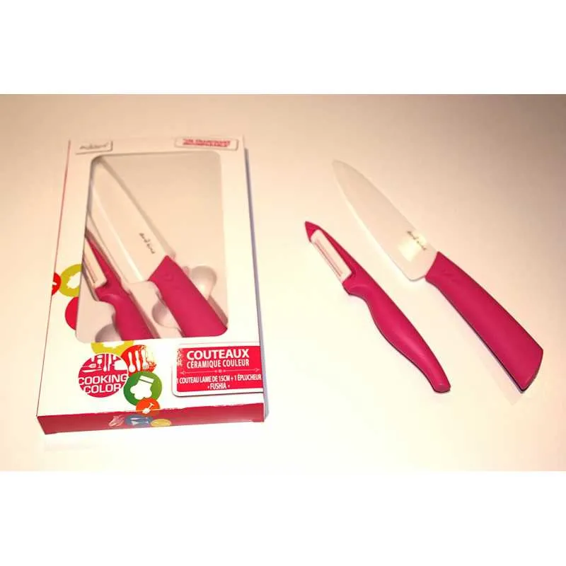 • SET DE 1 COUTEAU CERAMIQUE + 1 EPLUCHEUR CERAMIQUE FUSCHIA ARD'TIME LT2CTEP-FU