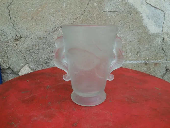 • Vase en verre moulé à décor d'hippocampes et de poissons produit en Tchécoslovaquie par Josef Inwald.