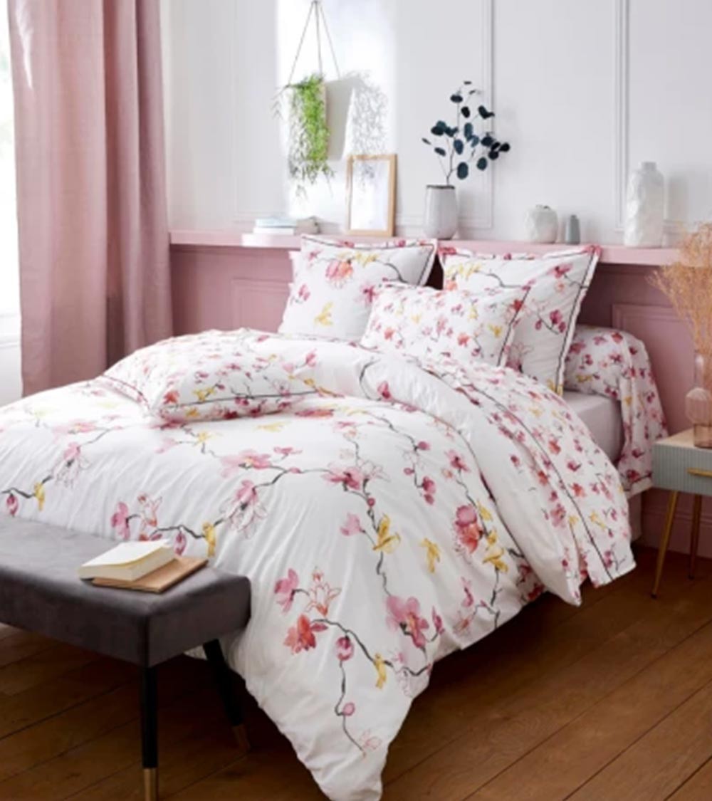 Promo !Drap de lit percale de coton ELISA ROSE