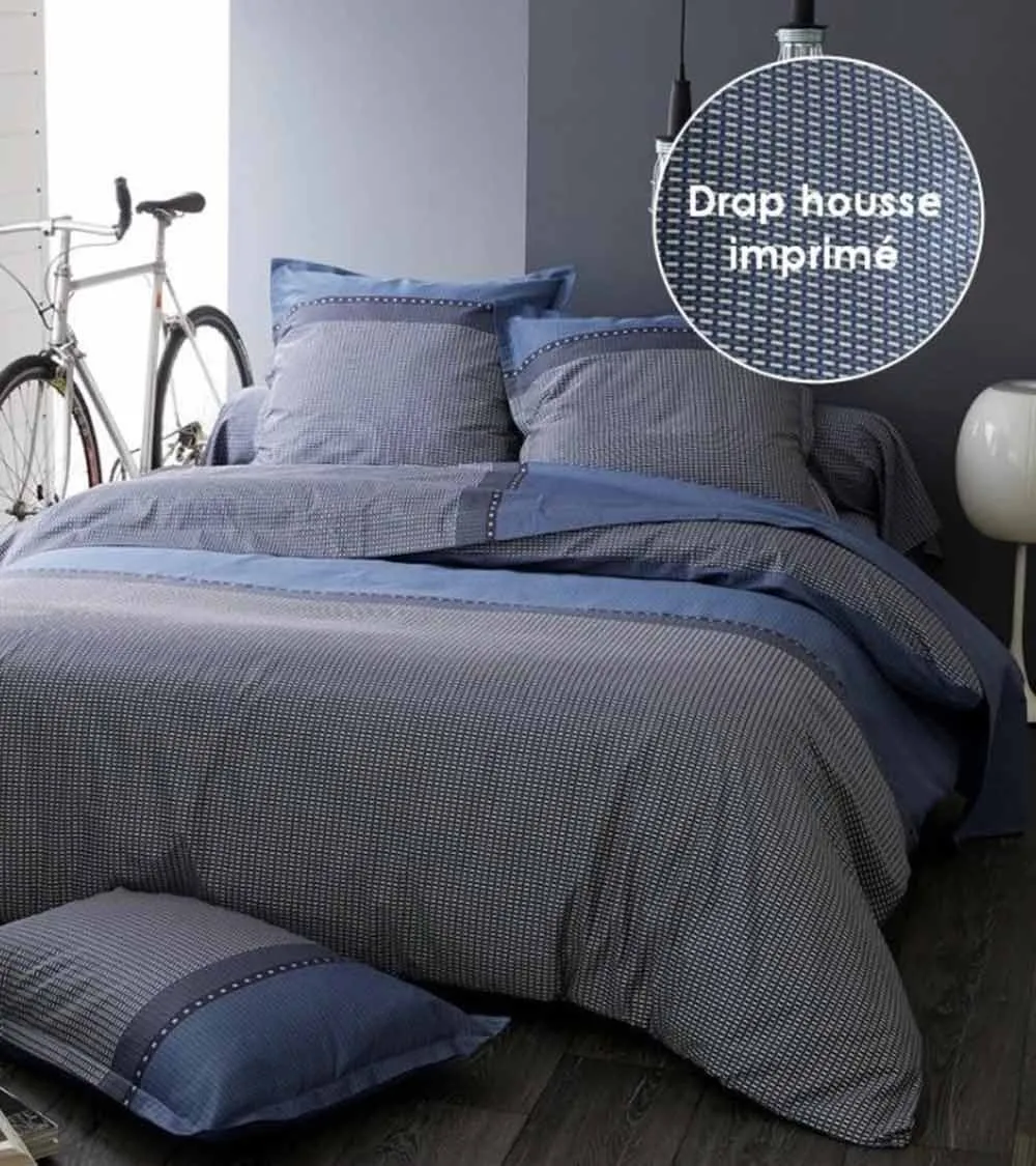 Promo !Drap de lit percale de coton LINO COBALT