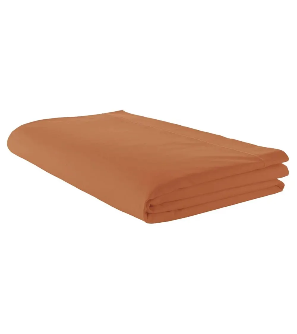 Promo !Drap de lit uni en percale de coton ACAJOU