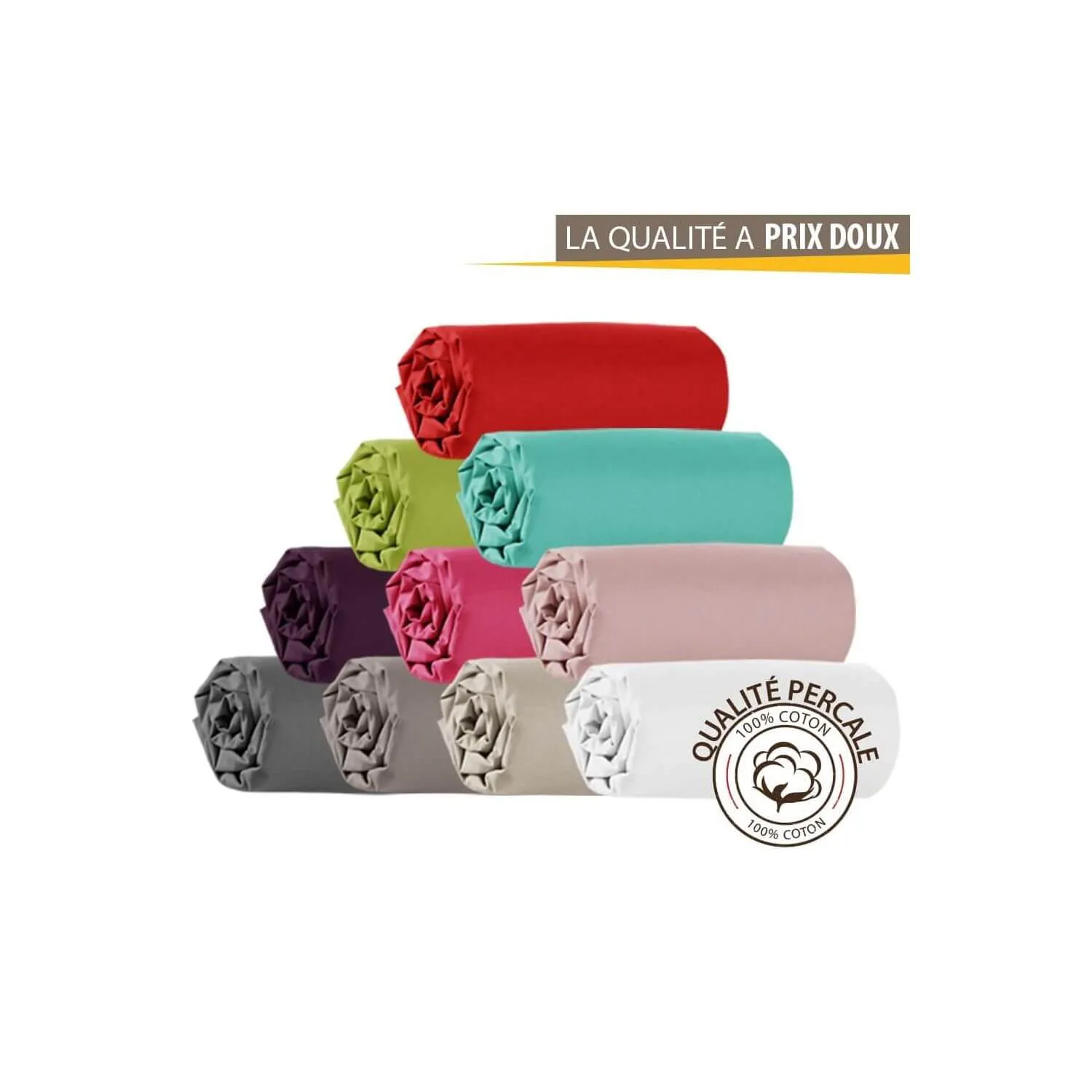 • Drap housse 90x190 cm - Percale 100% coton - Bonnet 30 cm