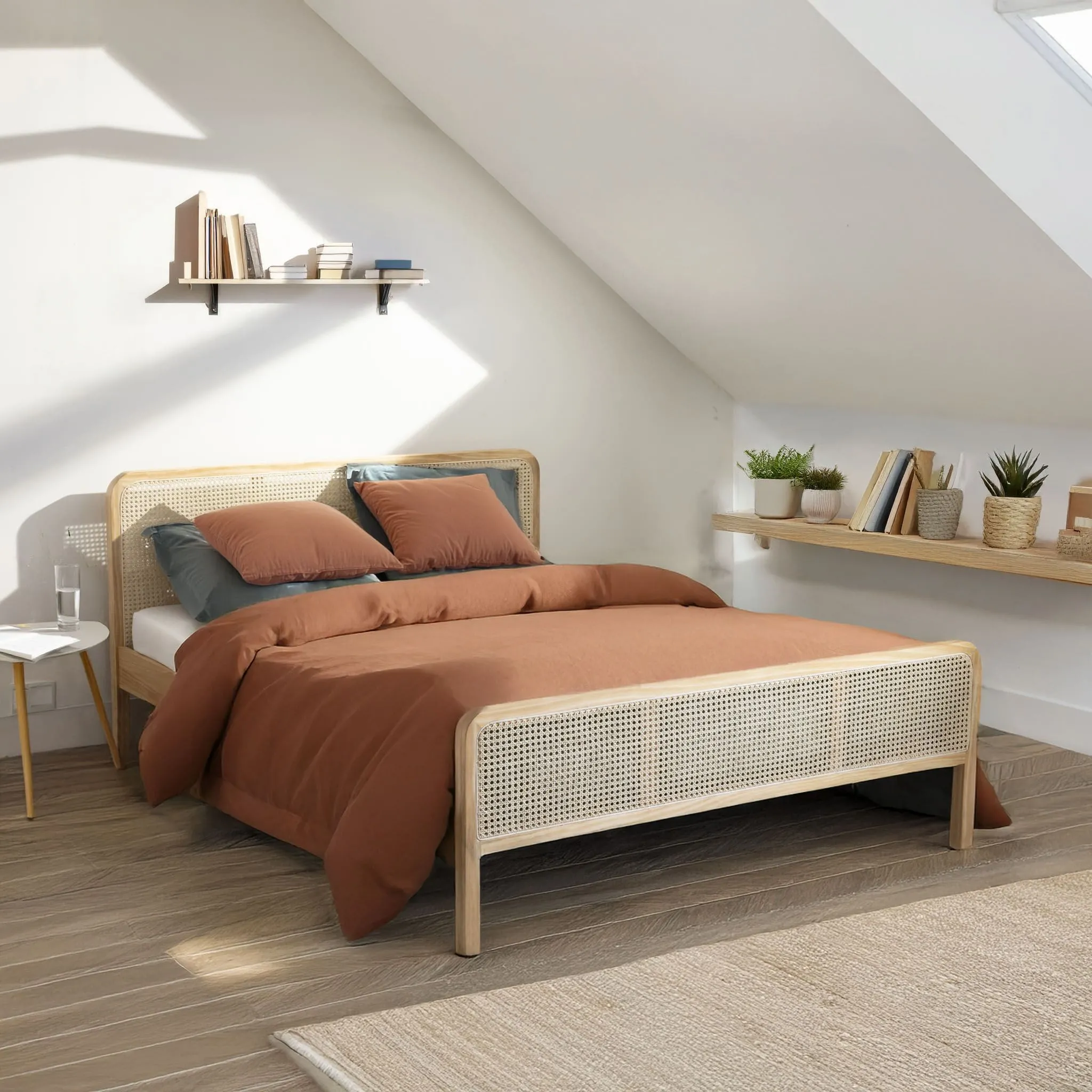 Promo !Ensemble matelas ferme mousse Tranquillité 2.0 + Lit adulte cannage bois naturel – LT17018
