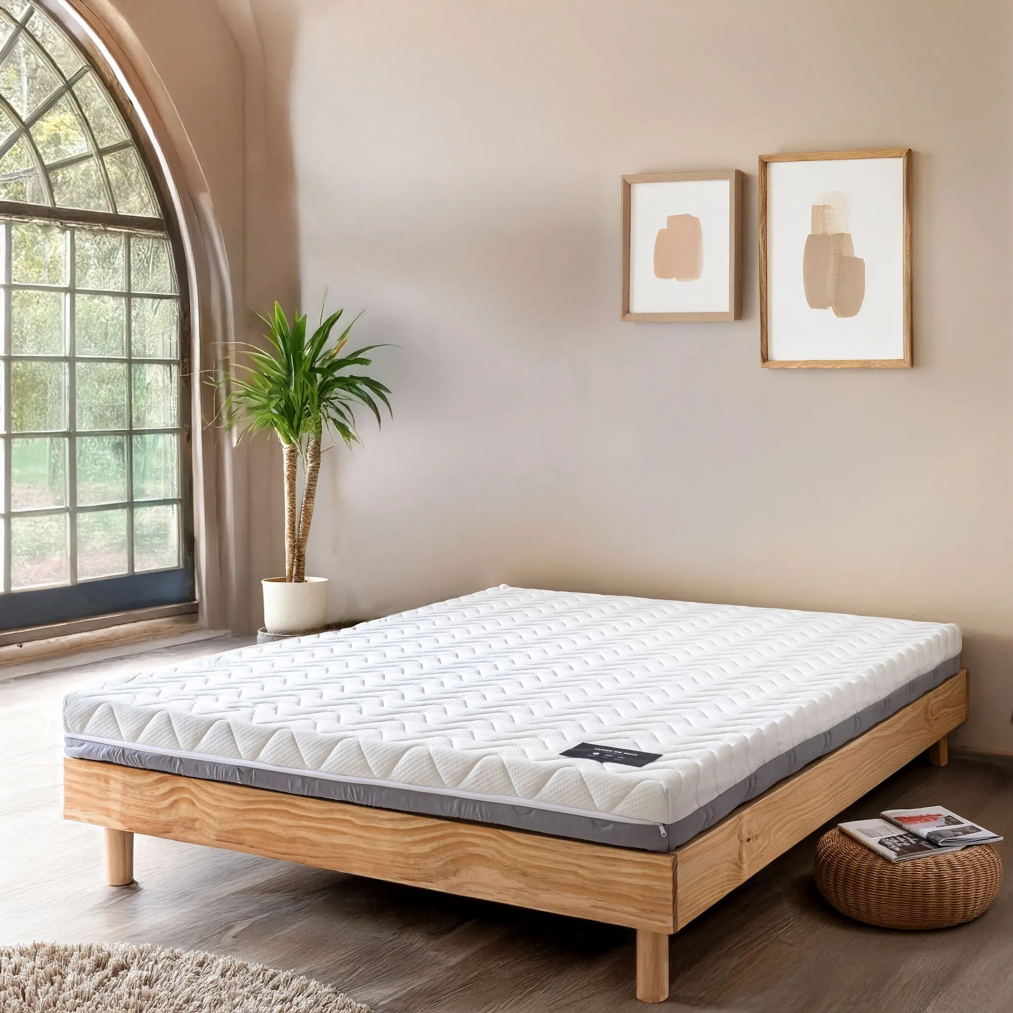 Promo !Ensemble matelas ferme mousse Tranquillité 2.0 + Lit adulte avec pieds évasés bois naturel – LT17017