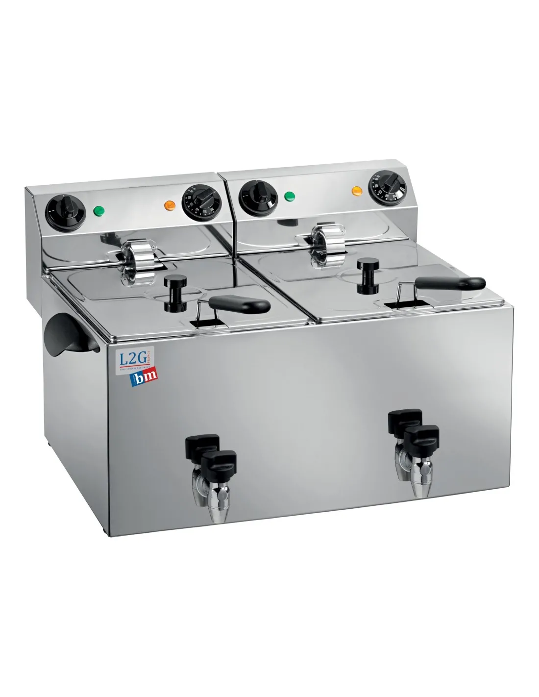 Promo !FRITEUSE ELECTRIQUE 2 CUVES DE 8L AVEC ROBINET DE VIDANGE Tension : 230V Mono – Puissance (en kW) : 2X3.25 L (en mm) : 595 – P (