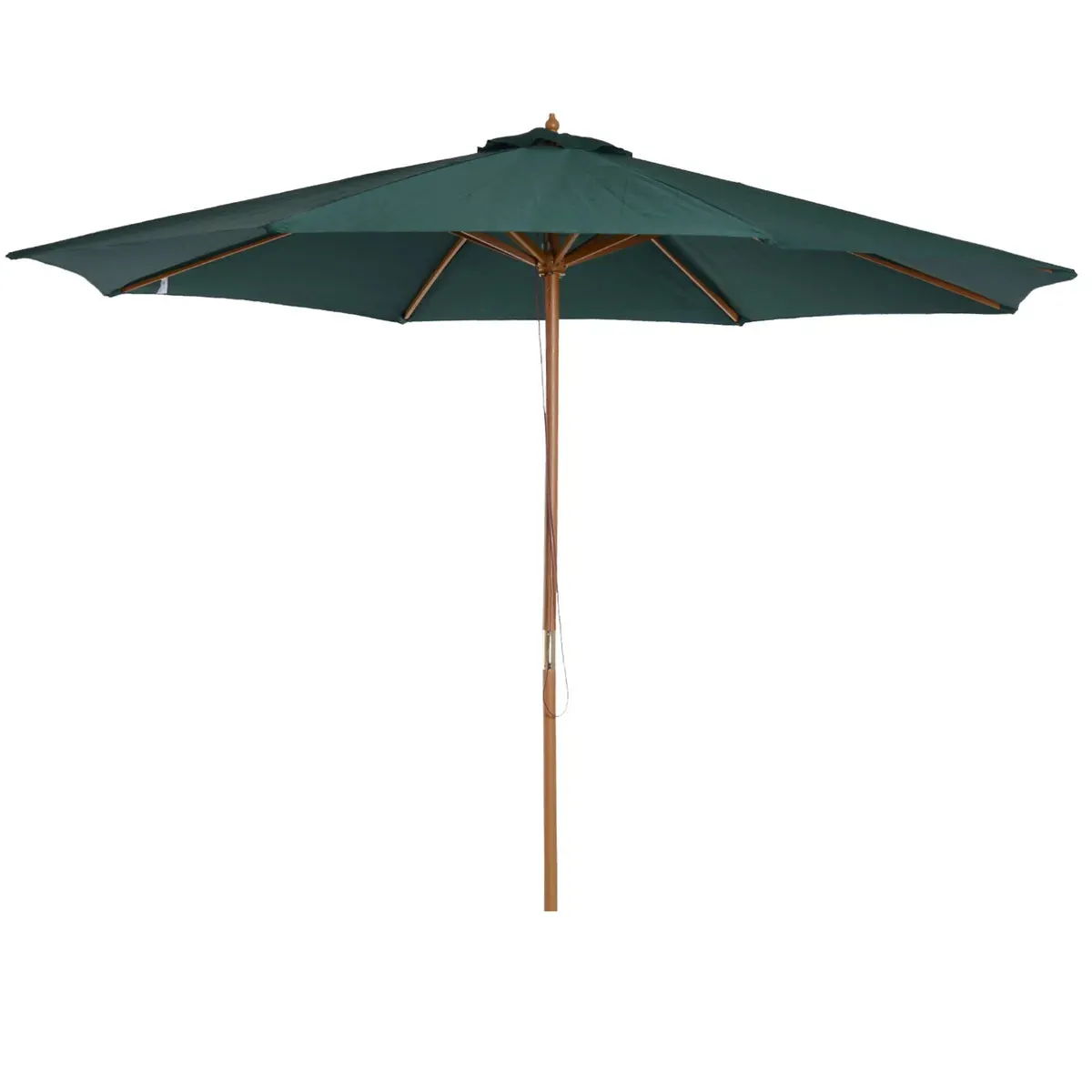Promo !Wooden Patio Umbrella 3m Pulley Operated Garden Parasol with Rope Pulley and 8 Ribs, Dark Green