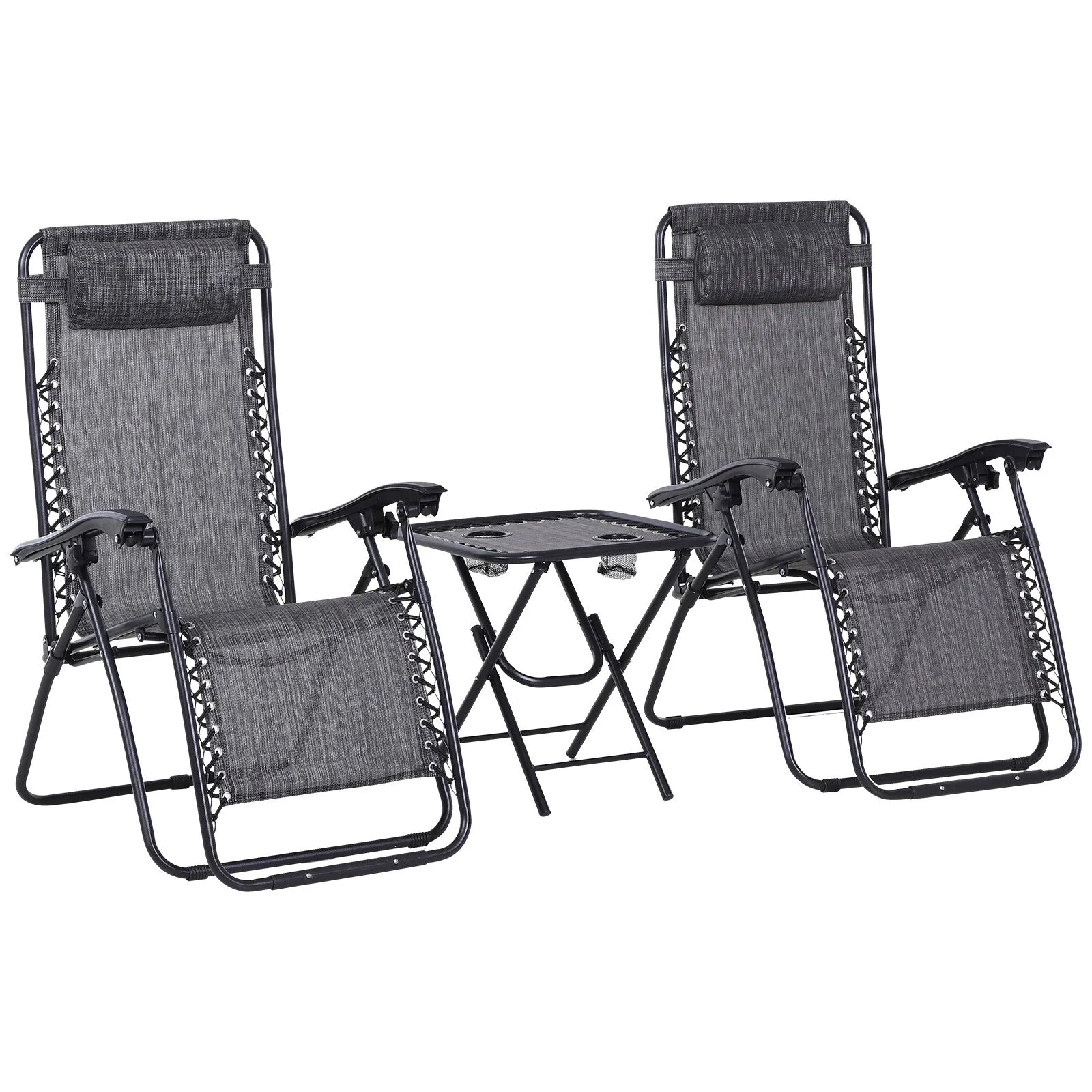 Promo !3 Piece Dark Grey Folding Zero Gravity Chairs Sun Lounger Table Set with Cup Holders Reclining for Garden Yard Pool