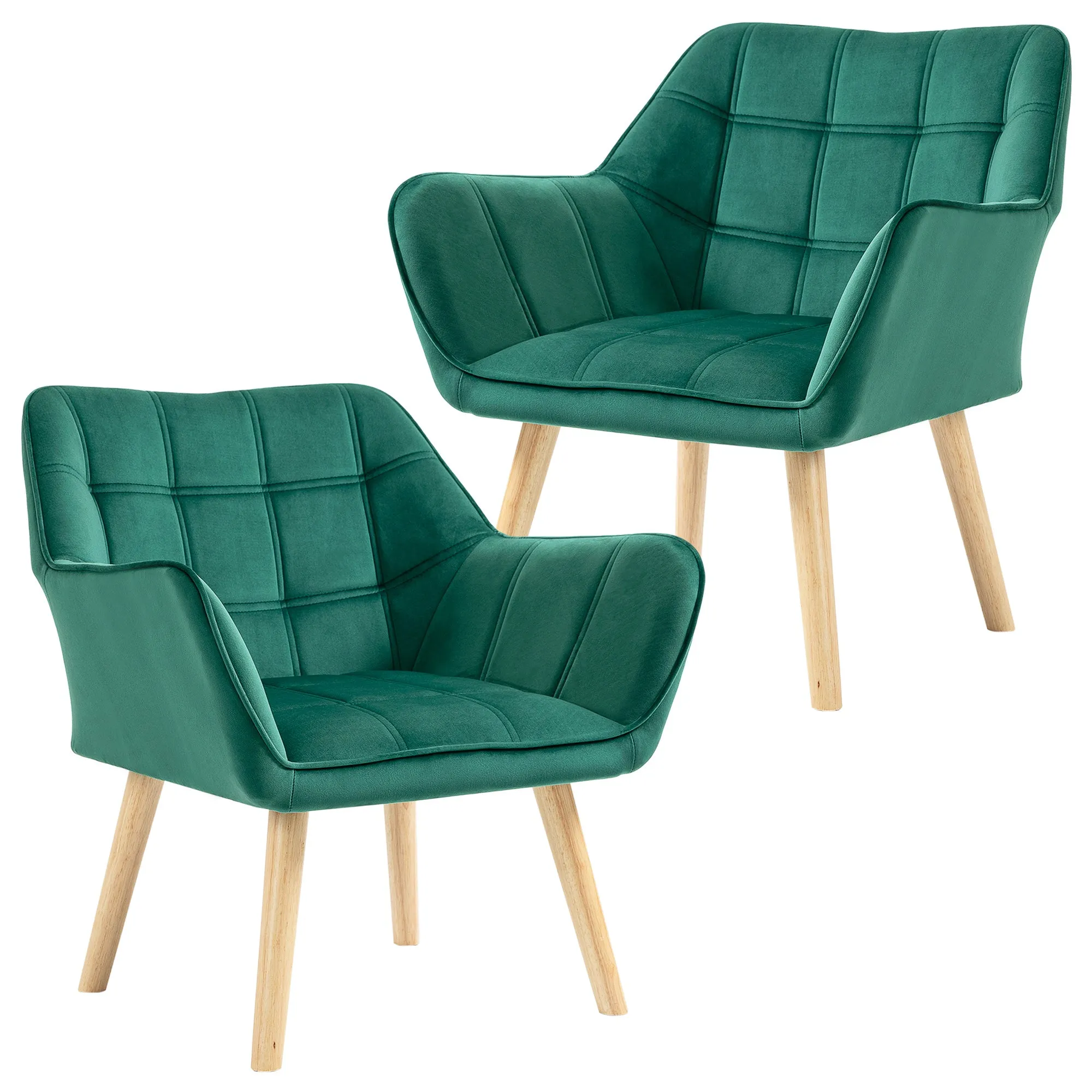 Armchair Accent Chair Vanity Chair Wide Arms Slanted Back Padding Metal Frame Wooden Legs Green Home Bedroom Furniture Seating Set of 2