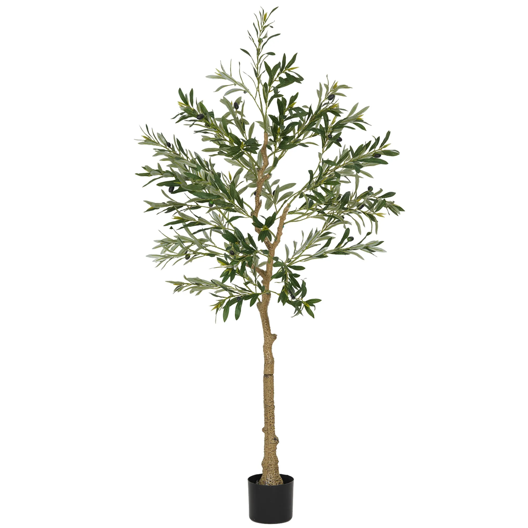 Artificial Plant Decorative Silk Olive Tree 5ft 150cm 720 Leaves 32 Olive Fruits in Pot Fake Plant Home Office Living Room Indoor Decor