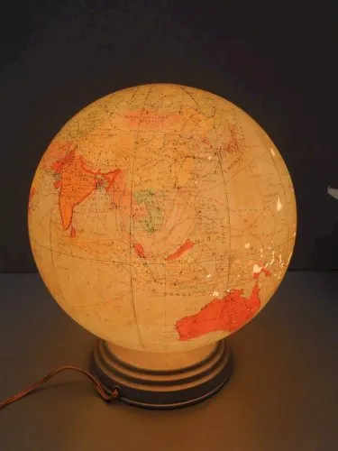 • -ANCIEN GLOBE TERRESTRE LUMINEUX VERRE & PAPIER CARTE TARIDE MADE IN FRANCE D