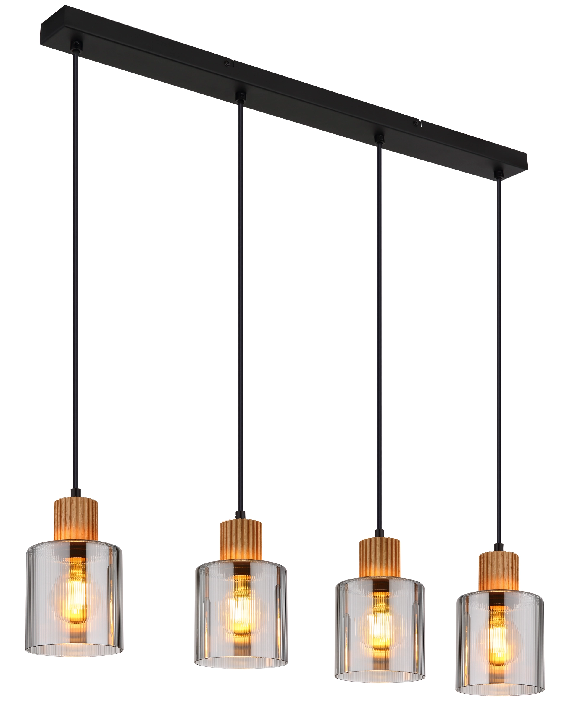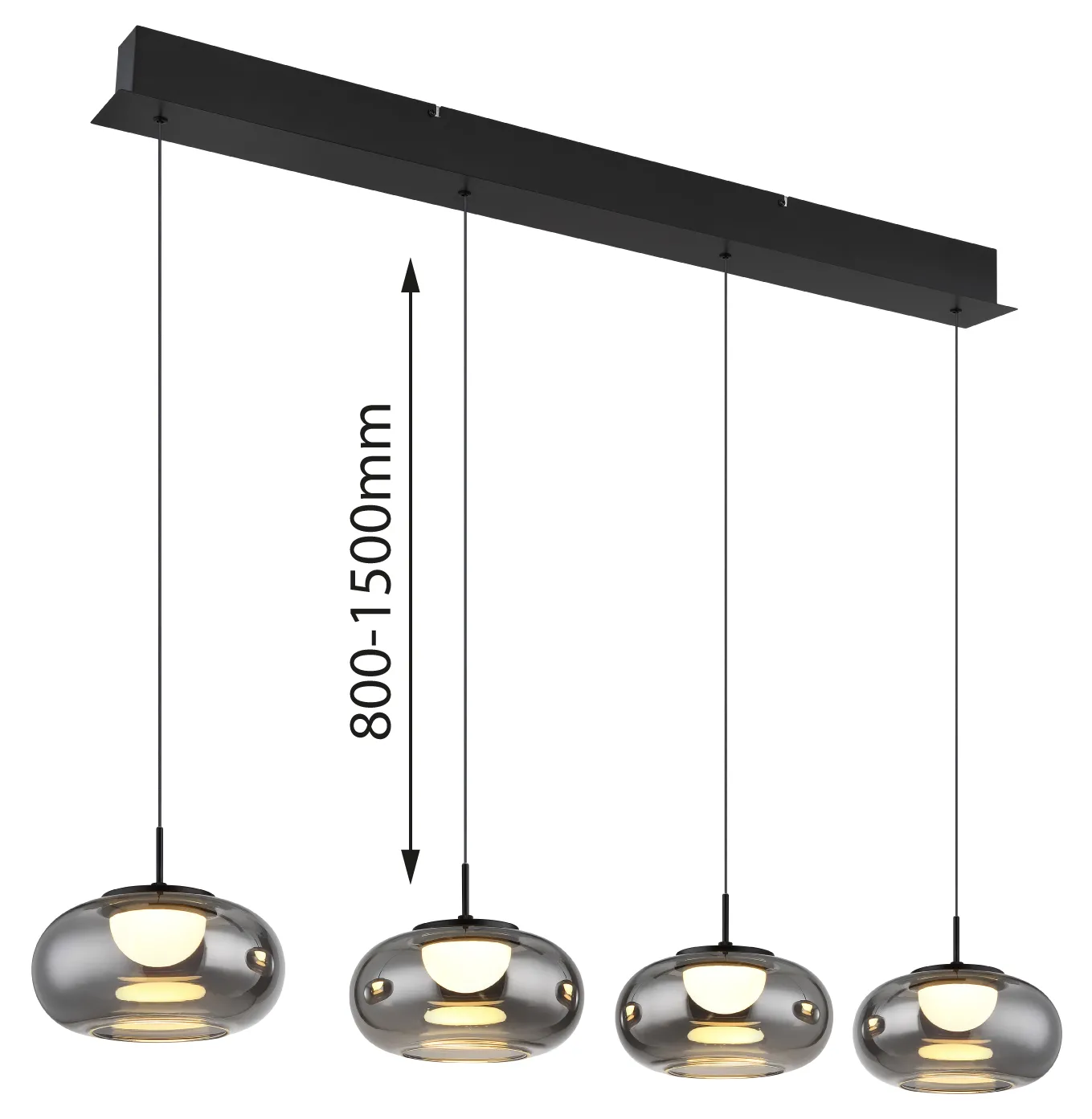 Promo !suspension – métal noir mat – verre fumé – 15744-4H