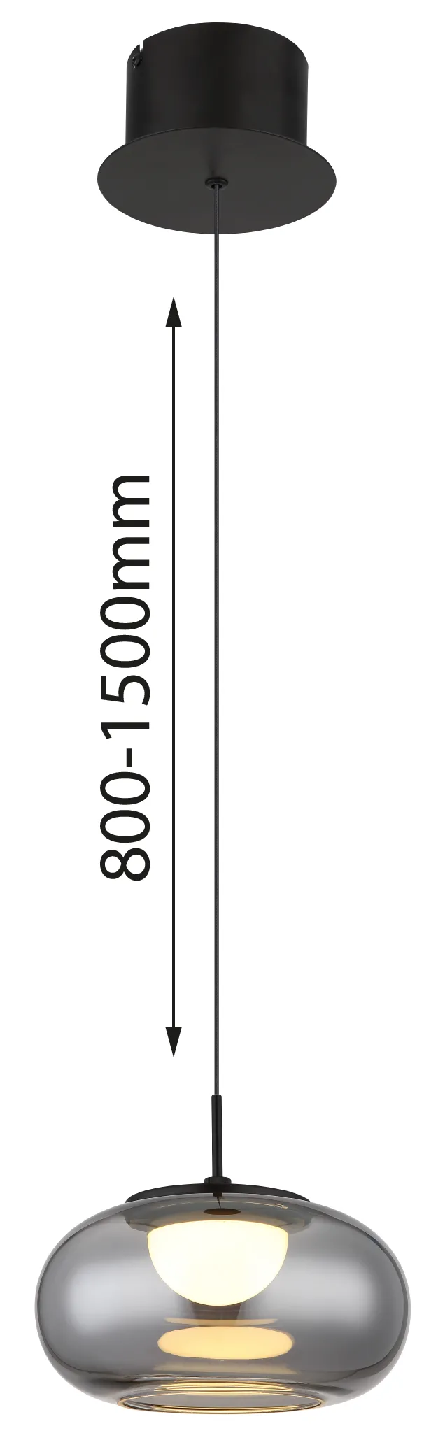 Promo !suspension – métal noir mat – verre fumé – 15744H