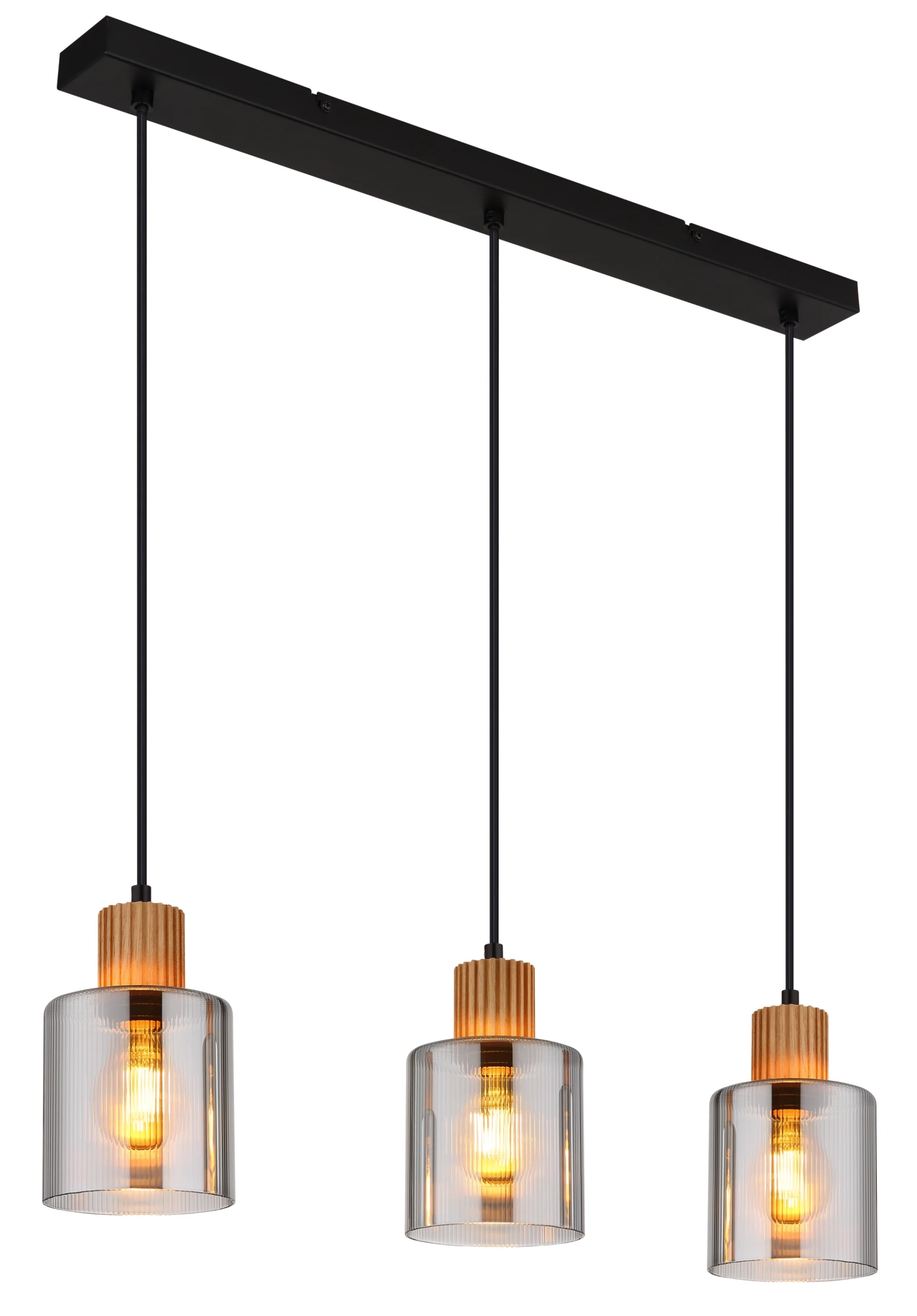 Promo !suspension – métal noir mat – verre fumé – 15777-3H