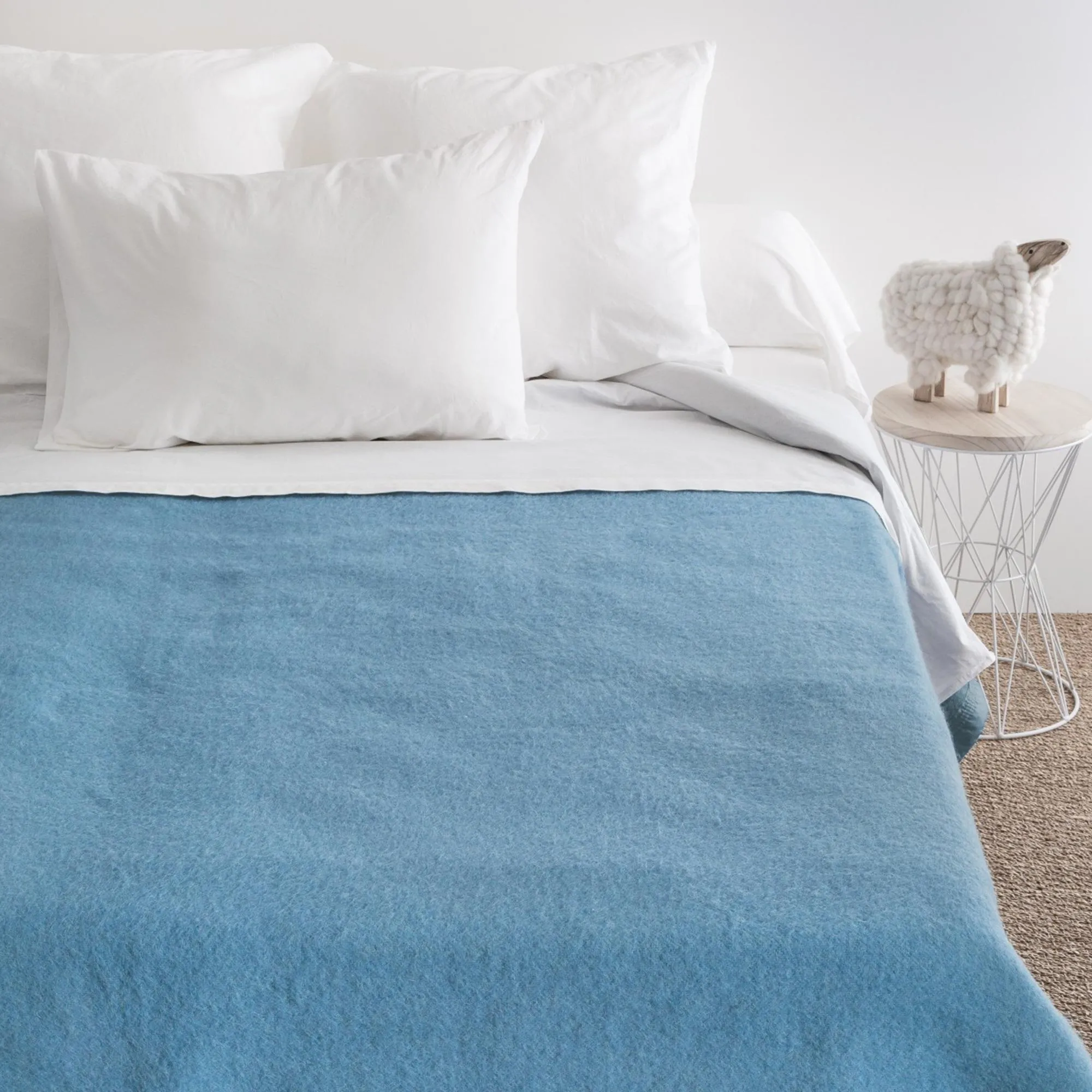 Promo !Couverture pure laine vierge Woolmark 500g/m², VOLTA 240×300 cm Bleu Azur