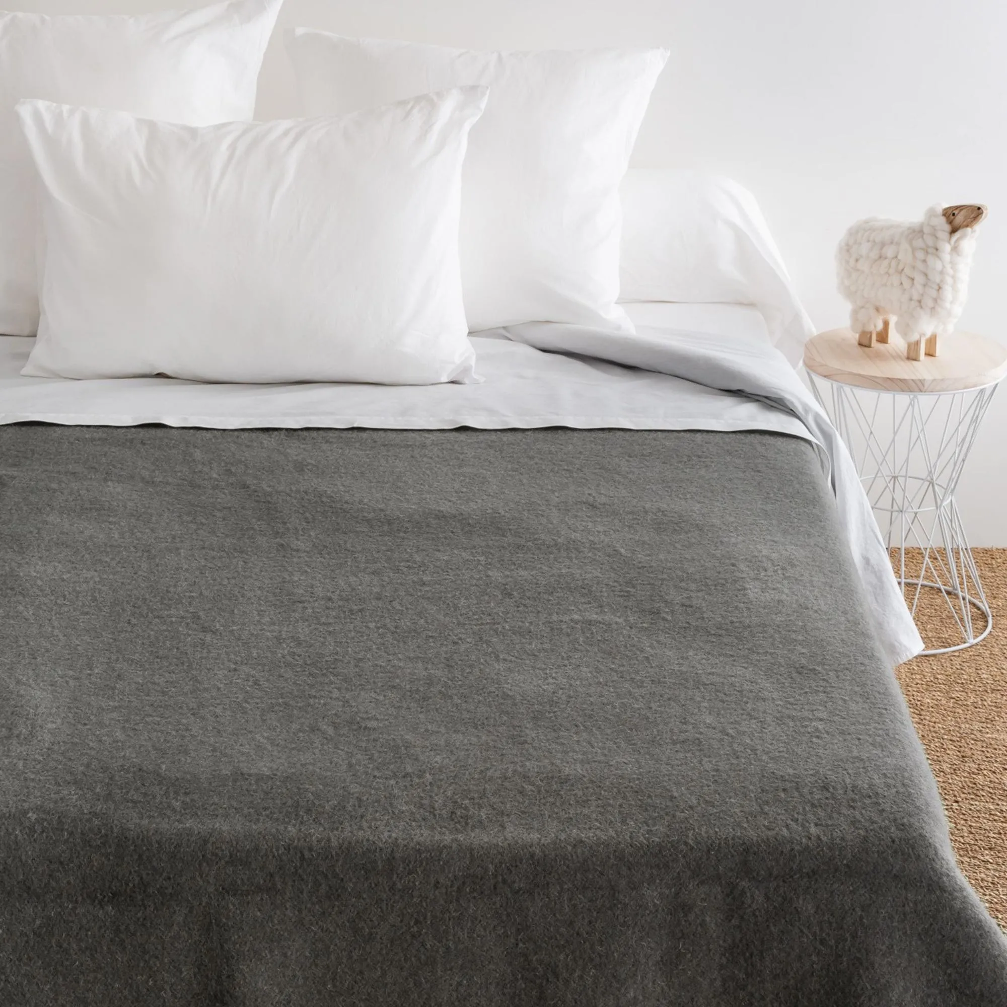 Promo !Couverture pure laine vierge Woolmark 500g/m², VOLTA 220×240 cm Gris Acier