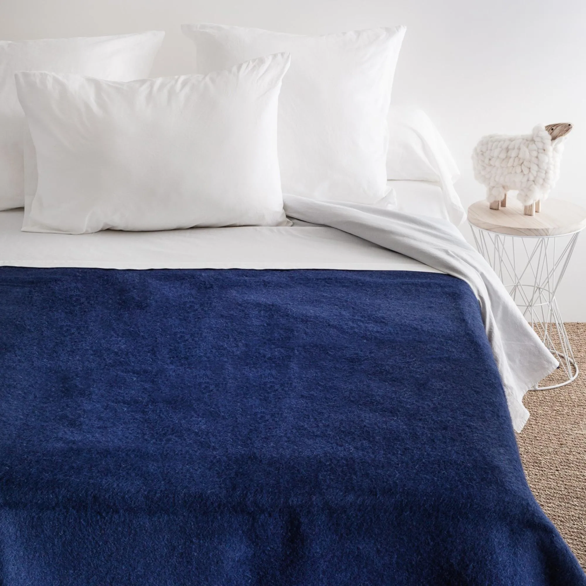 Promo !Couverture pure laine vierge Woolmark 500g/m², VOLTA 240×300 cm Bleu Marine/Myosotis