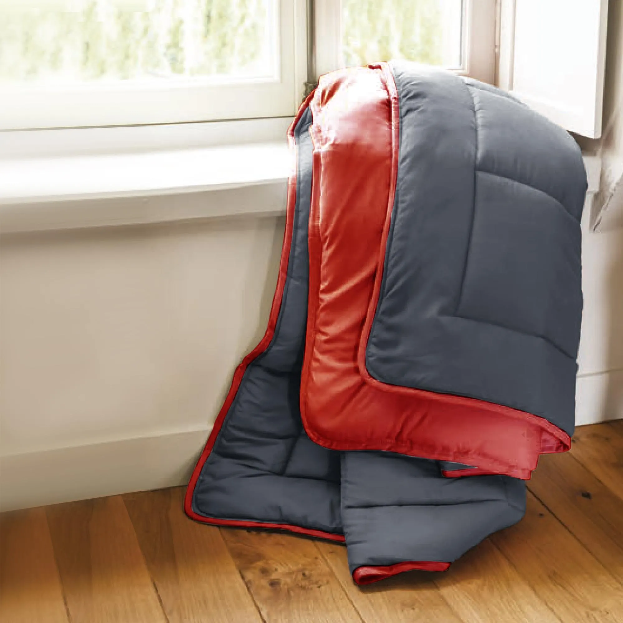 Promo !Couette hiver 140×200 cm COCOON BICOLORE Gris/Rouge garnissage fibre polyester 400 g/m2