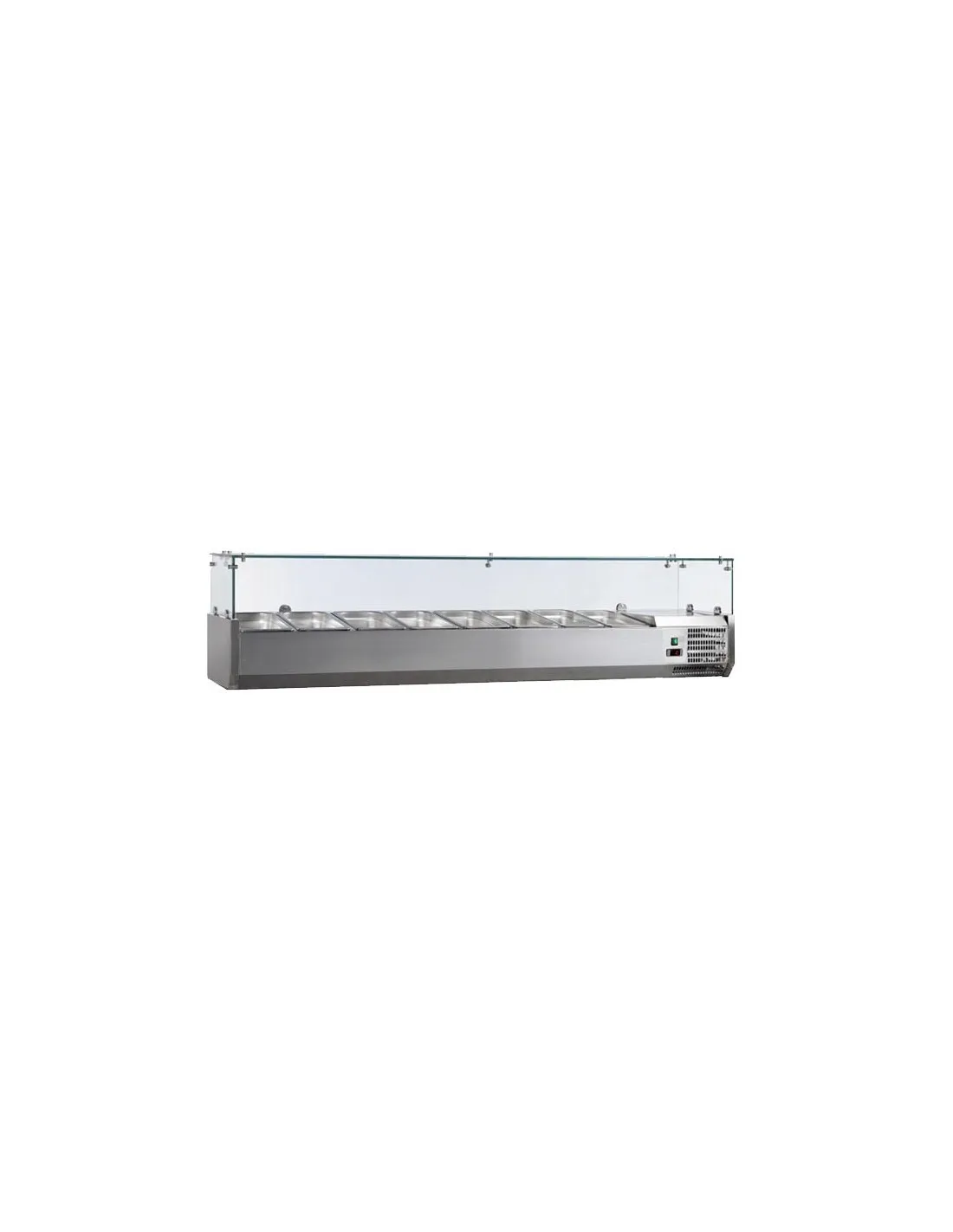 Promo !VITRINE A INGREDIENTS INOX. +2/+8°C. GAZ R600A PARE-HALEINE VERRE. 7GN1/3-150 NON COMPRIS Tension : 230V Mono – Puissance (en kW