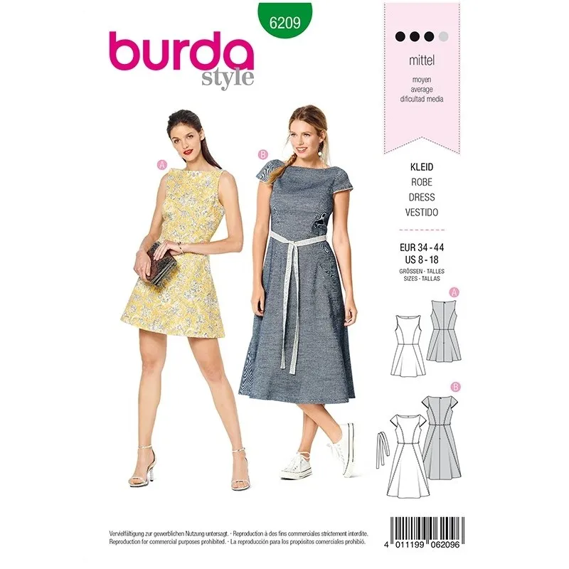 Patron Burda 6209 Robe Avec Une Jupe Evaée – Encolure Bateau