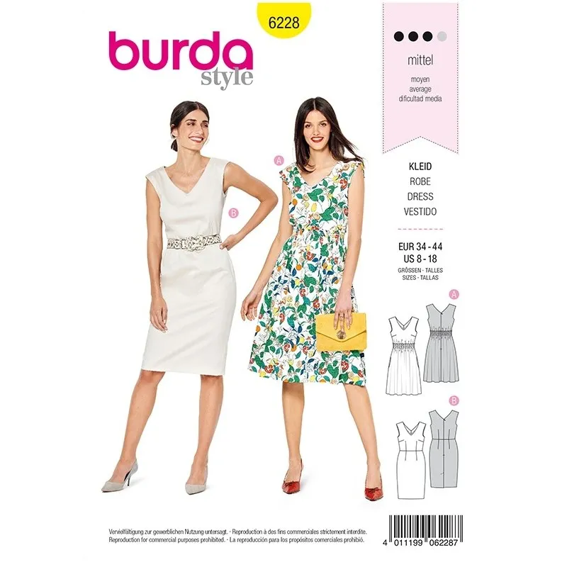 Promo !Patron Burda 6228 Robe Avec Smock Elastique – Robe Fourreau – Encolure En V