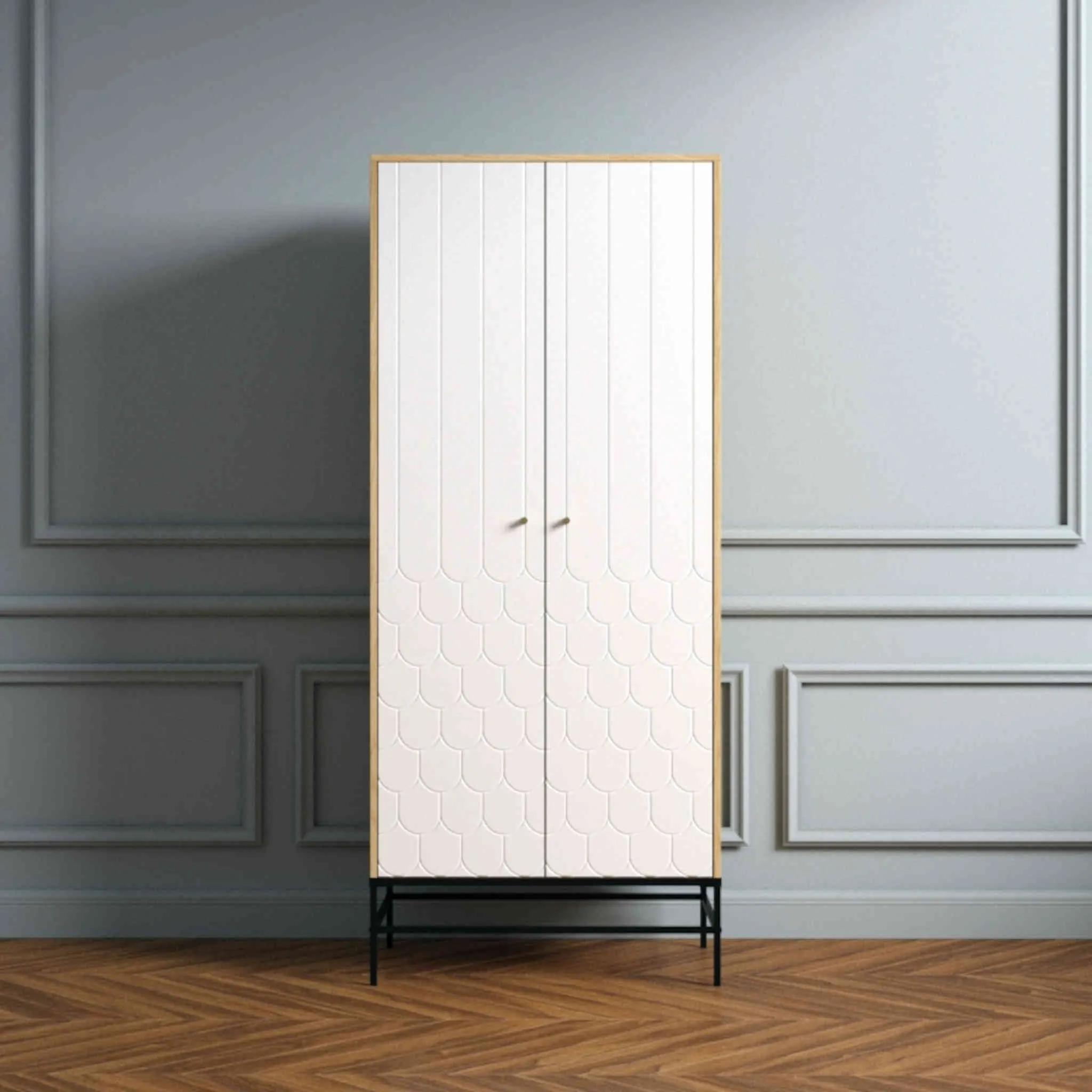 Promo !Armoire 2 portes 2 tiroirs en bois avec pieds en acier – BI0048