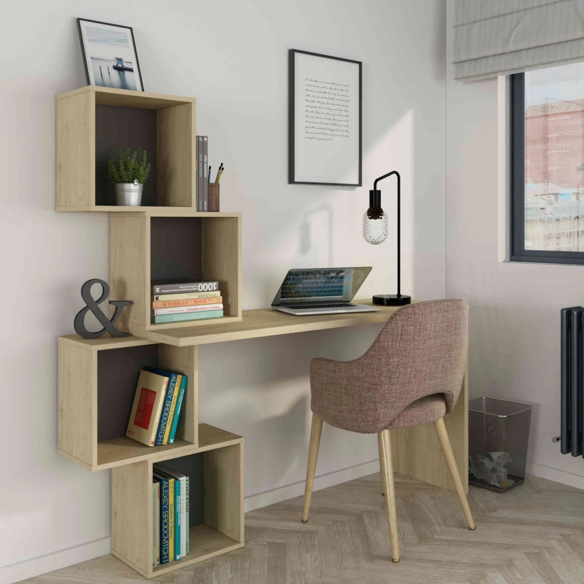Bureau avec 4 niches de rangement en bois imitation chêne – BU9047