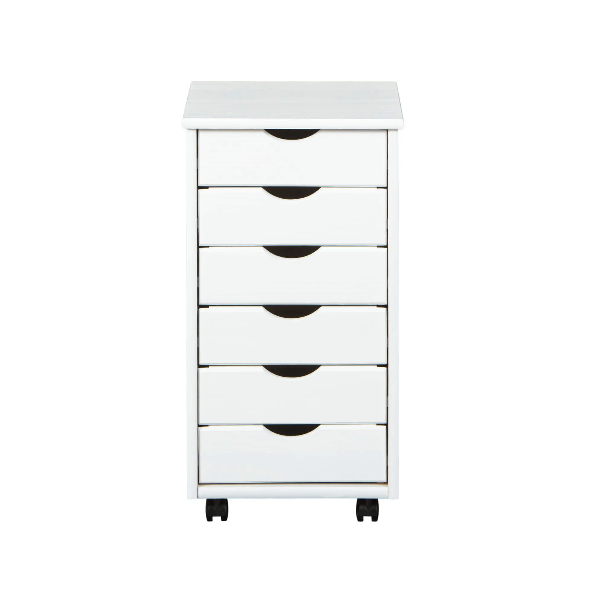 Promo !Caisson 6 tiroirs pin massif vernis blanc