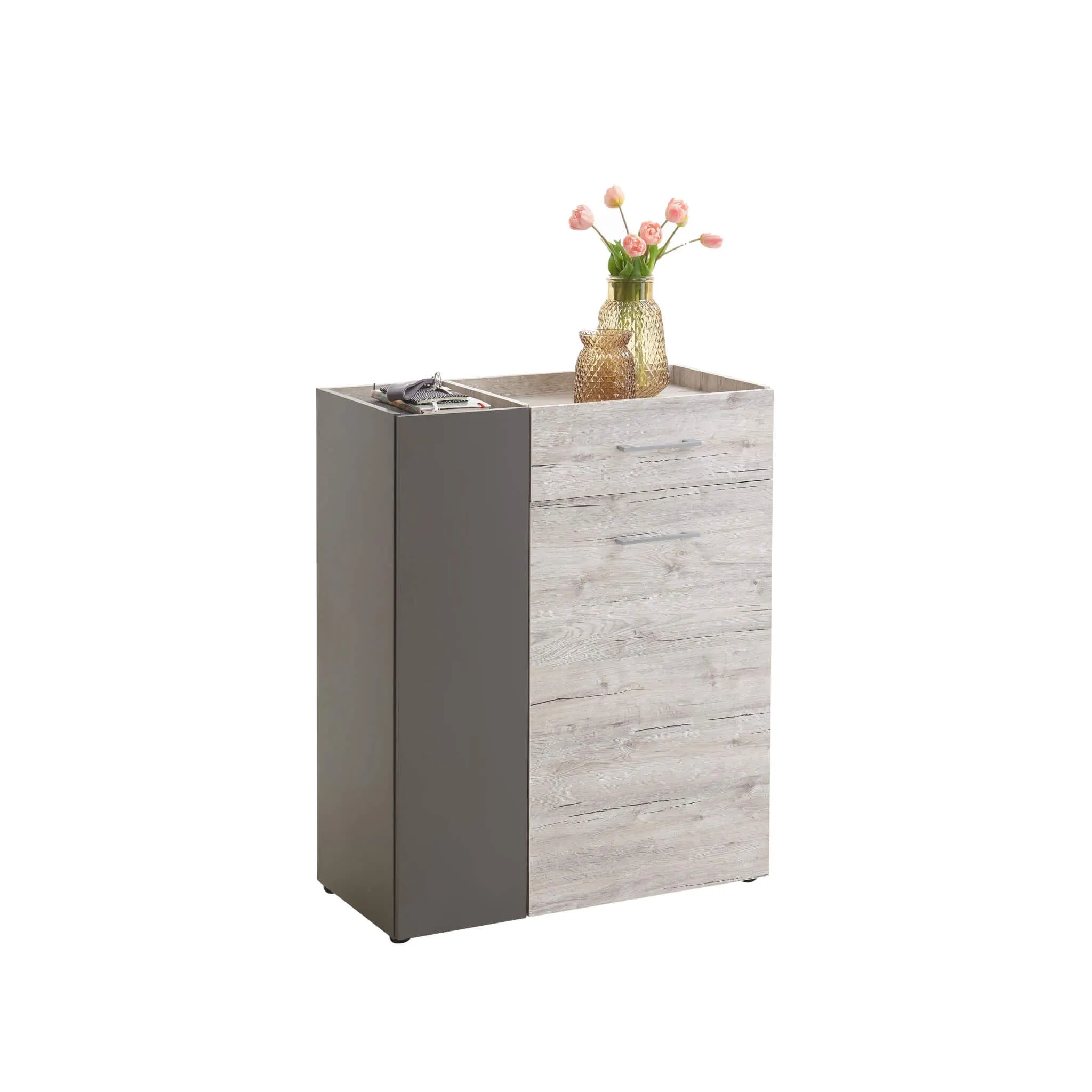 Commode 2 portes 4 tiroirs en bois imitation chêne et anthracite – CO12087