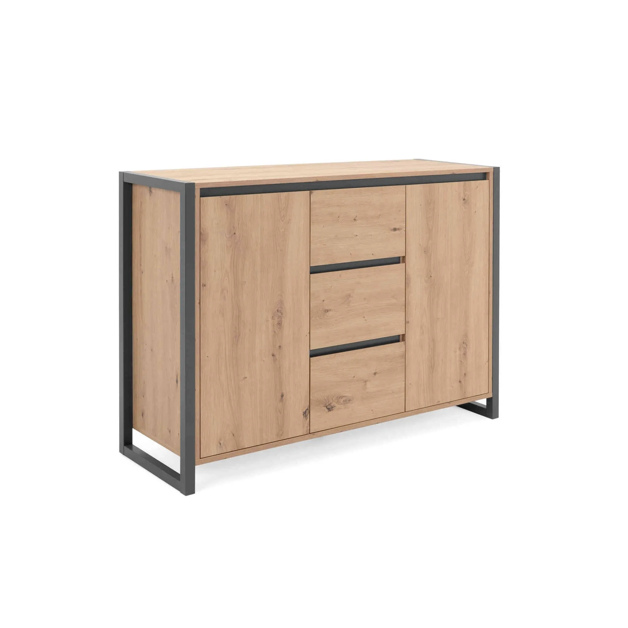 Commode 2 portes 1 tiroir coloris chêne sable et lava – CO13059
