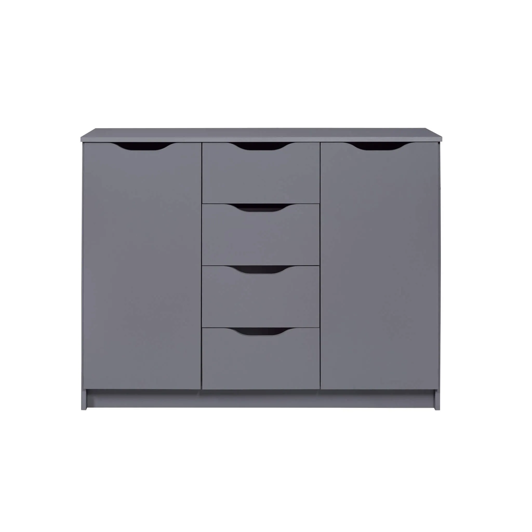 Commode 2 portes et 4 tiroirs en bois gris anthracite – CO12099