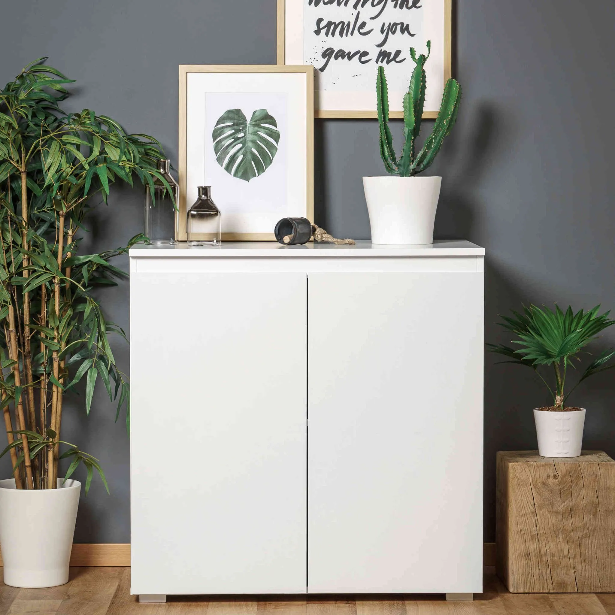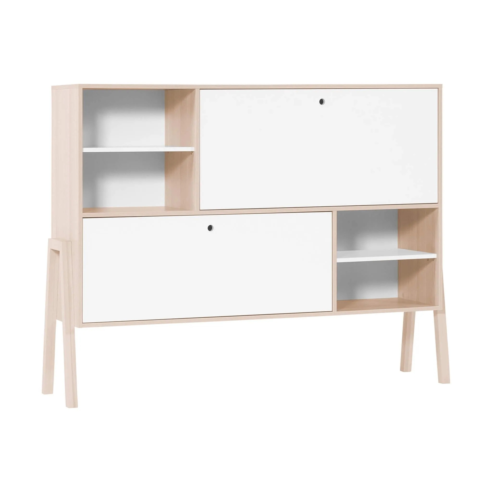 Commode 2 portes avec niches de rangement en bois imitation chêne clair et blanc – CO17031