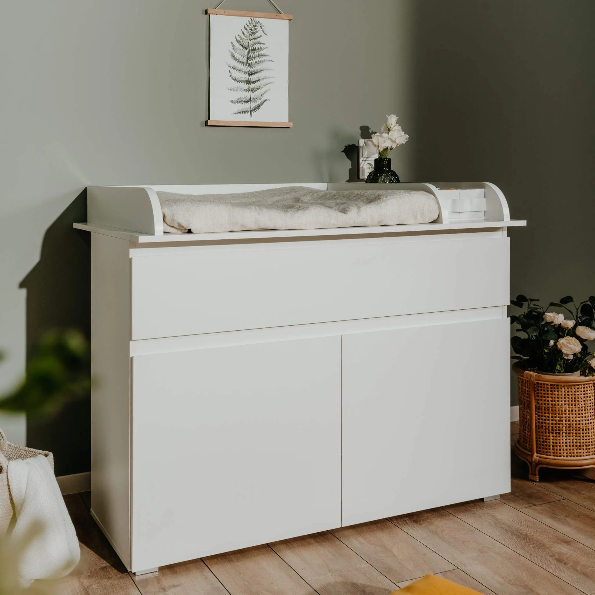 Commode à langer bébé 2 portes 1 tiroir en bois blanc – CO7083