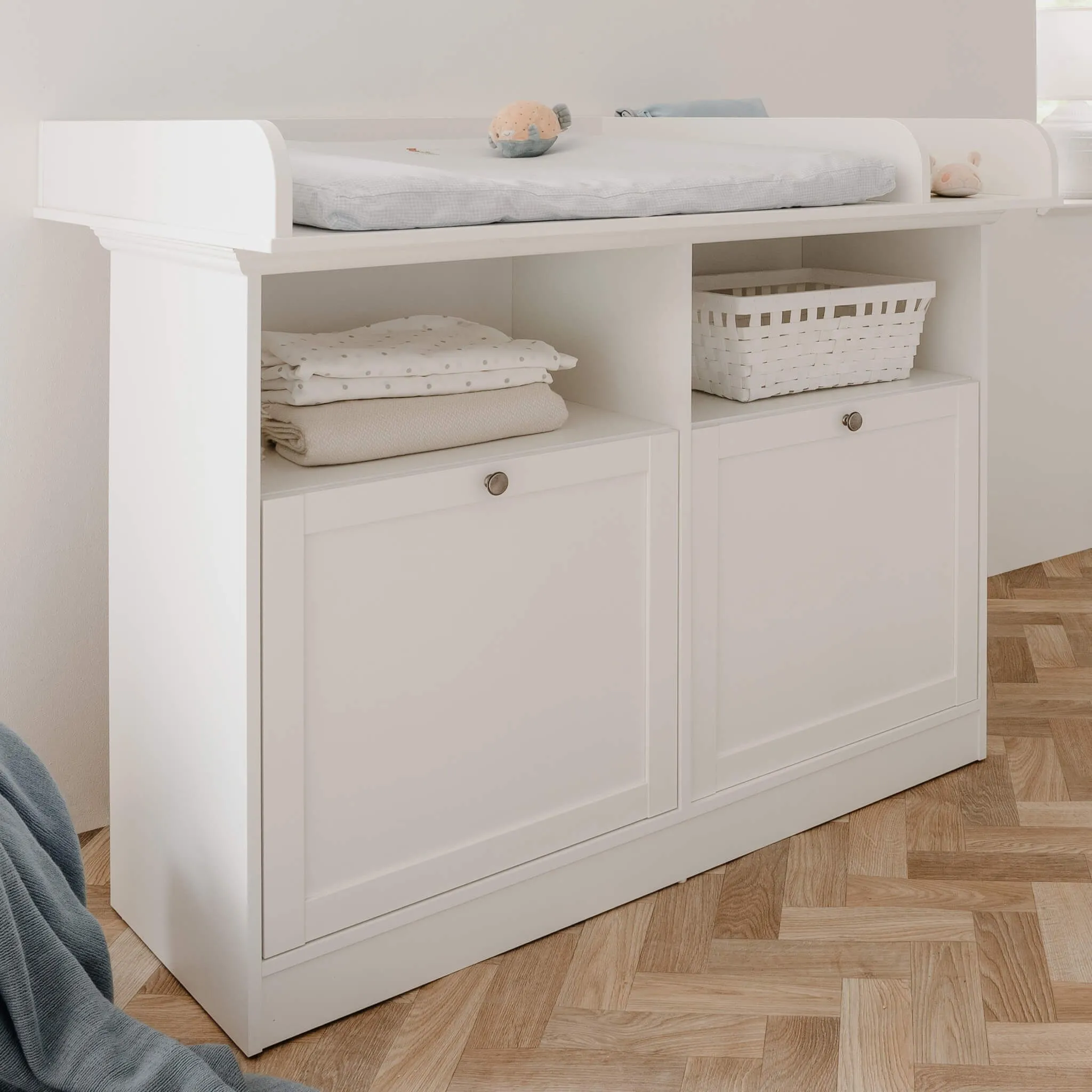 Commode à langer bébé 2 tiroirs 2 niches ouvertes en bois blanc – CO7084