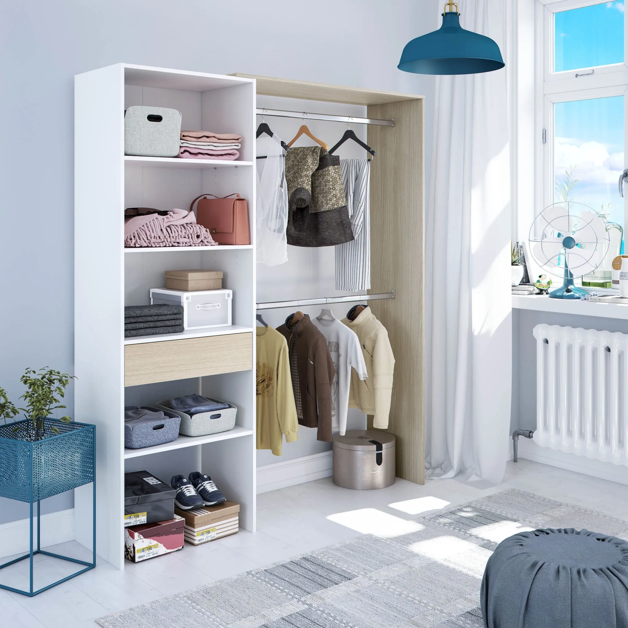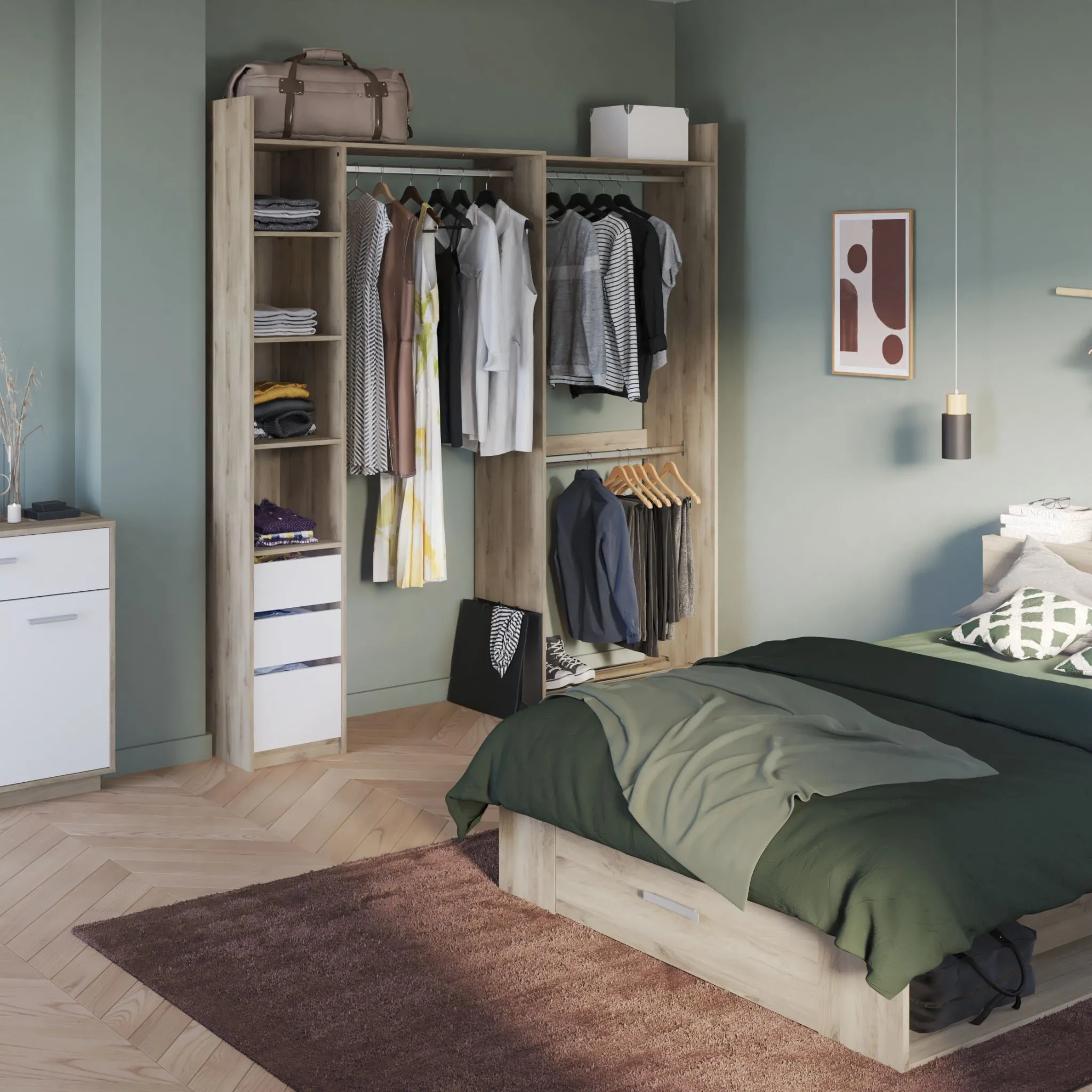 Dressing ouvert avec étagères et tiroir blanc et chêne – DR81007