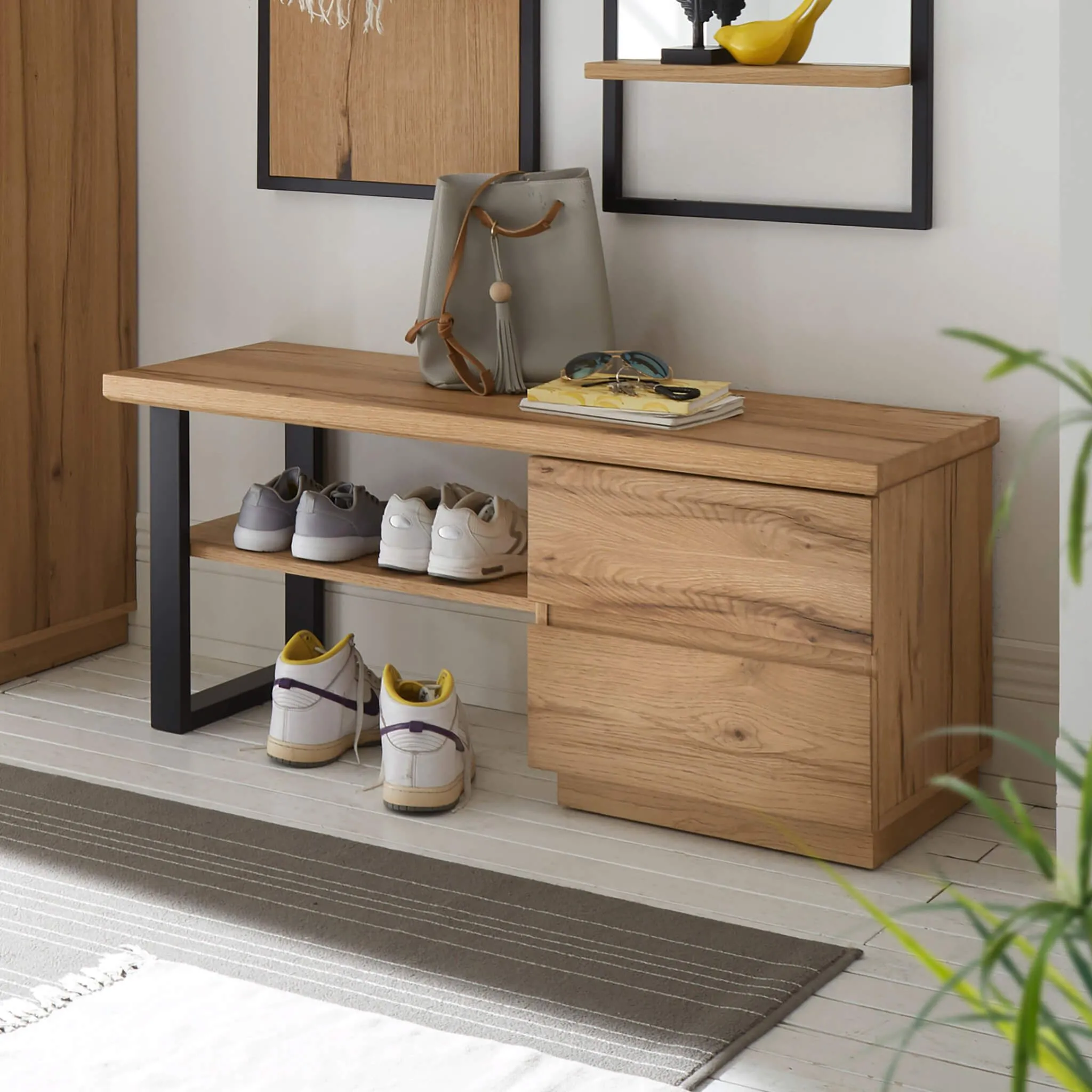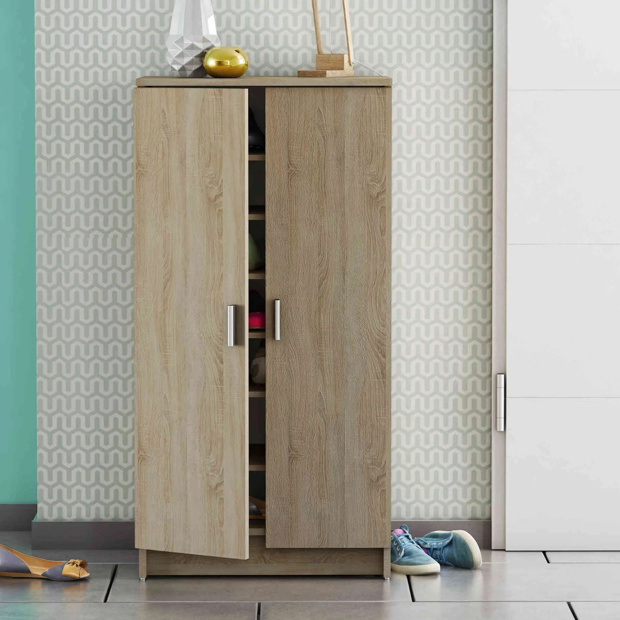 Promo !Meuble à chaussures 2 tiroirs en bois imitation chêne – MC16005