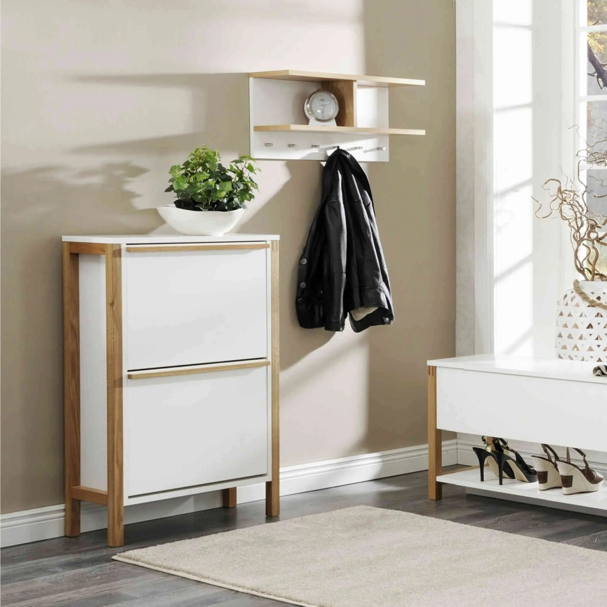 Promo !Meuble à chaussures 2 tiroirs en bois blanc – MC0051
