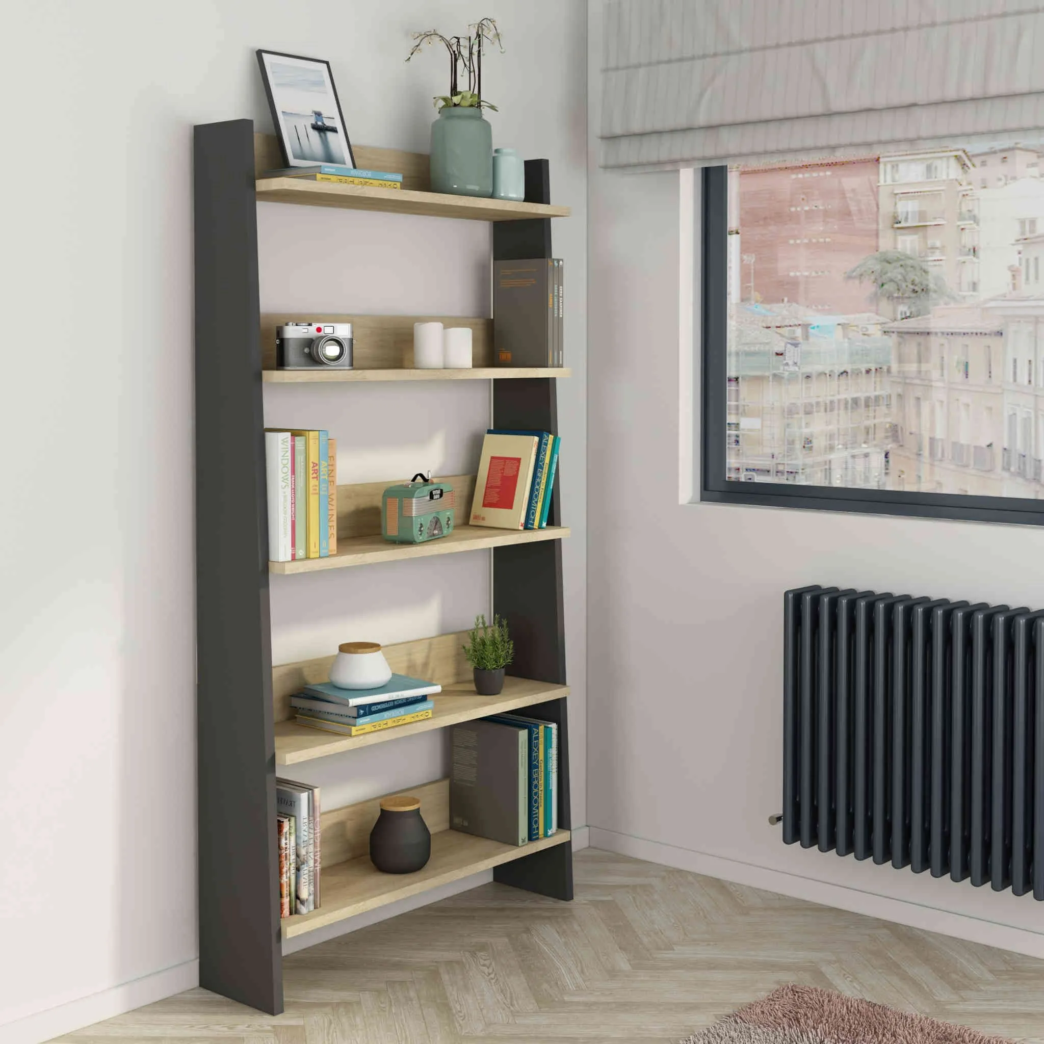 Promo !Bibliothèque 5 étagères en bois imitation chêne et gris – BI9049