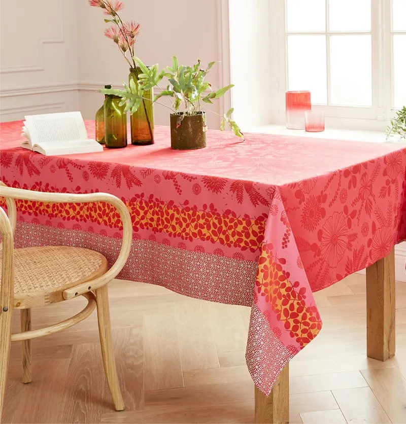 Promo !Nappe coton jacquard enduite Mosaïc rubis