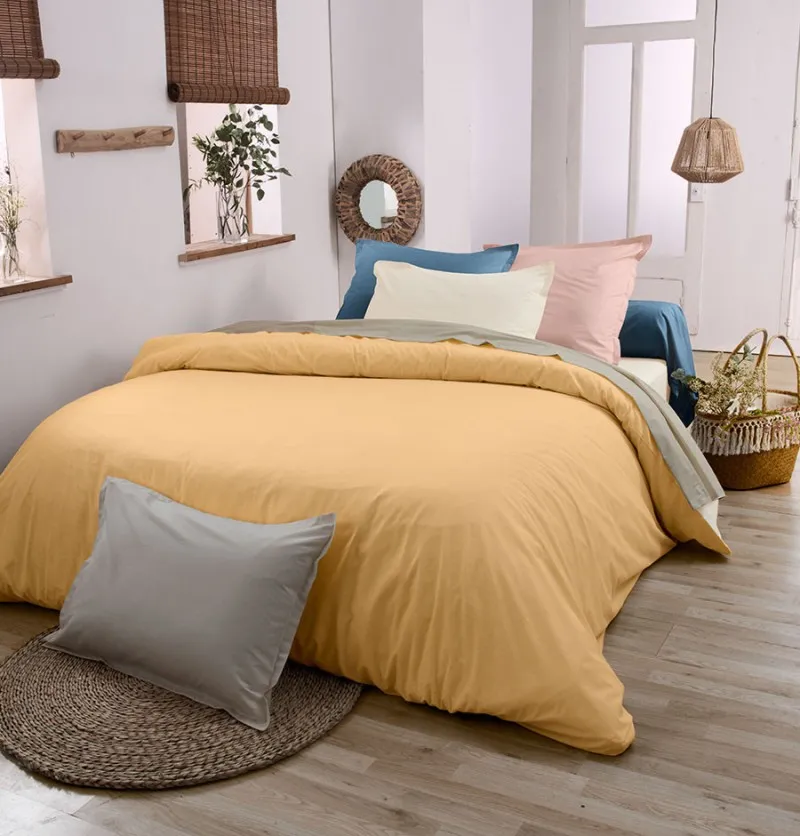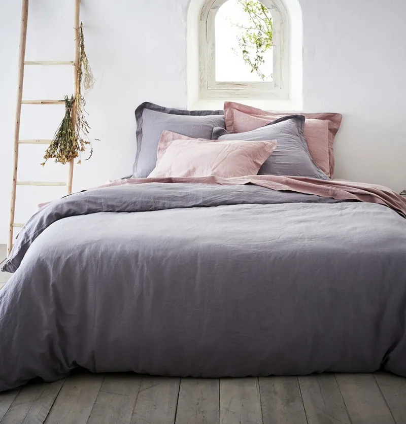 • Parure de lit coton bio et chanvre Organic cendre et rose poudré