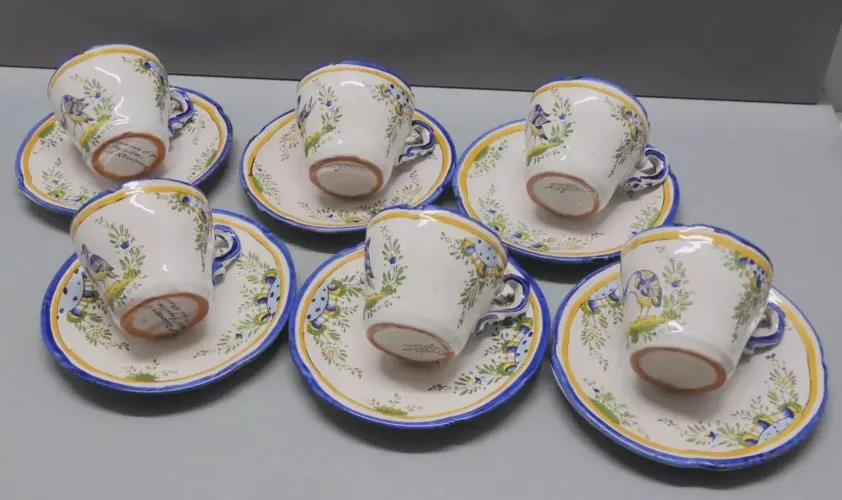 Promo !-6 TASSES A CAFE 6 SOUCOUPES CERAMIQUE LE RENOLEAU ANGOULEME déco OISEAUX D