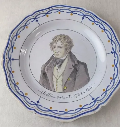 Ancienne assiette décor Chateaubriand, en céramique, à identifier