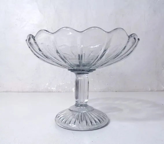 ancienne assiette sur pied compotier serviteur en verre moulé vintage