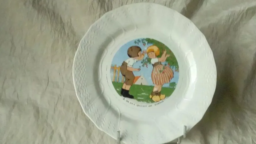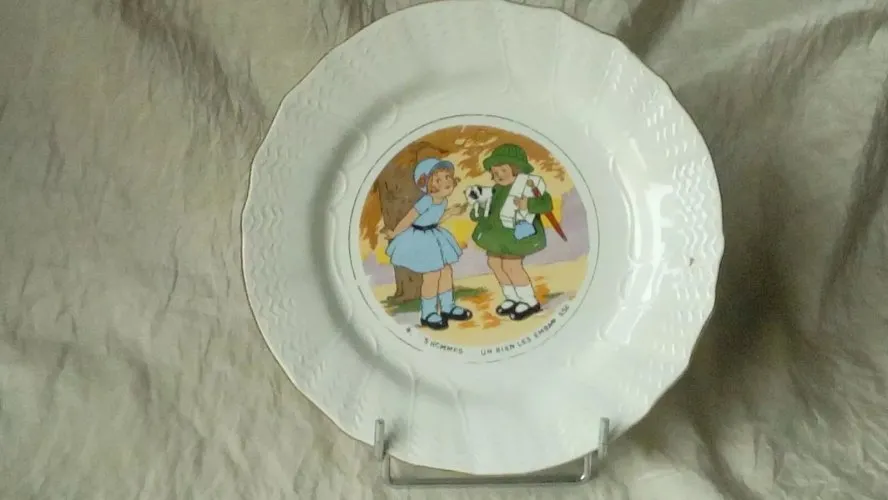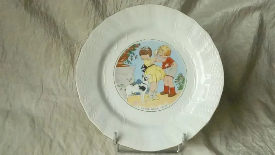 ASSIETTE A DESSERT FAIENCE DE SARREGUEMINES SCENE DENFANT DAPRES BICOT N°4**