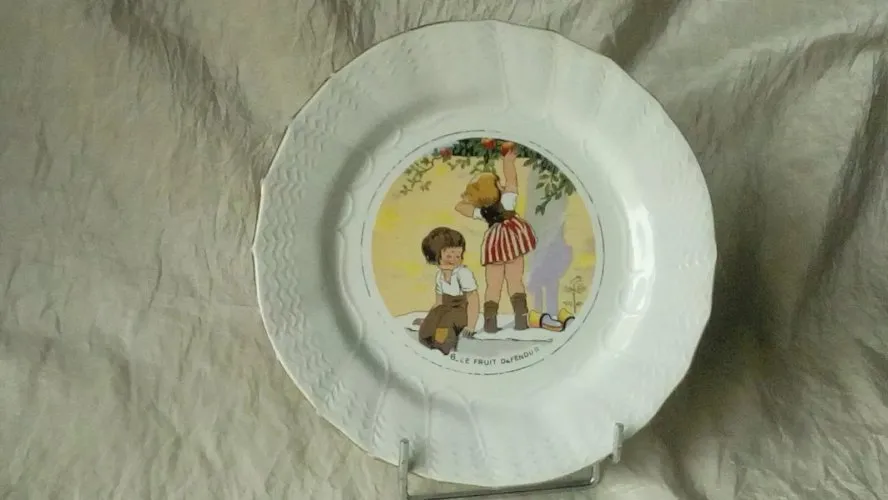 ASSIETTE A DESSERT FAIENCE DE SARREGUEMINES SCENE DENFANT DAPRES BICOT N°6**